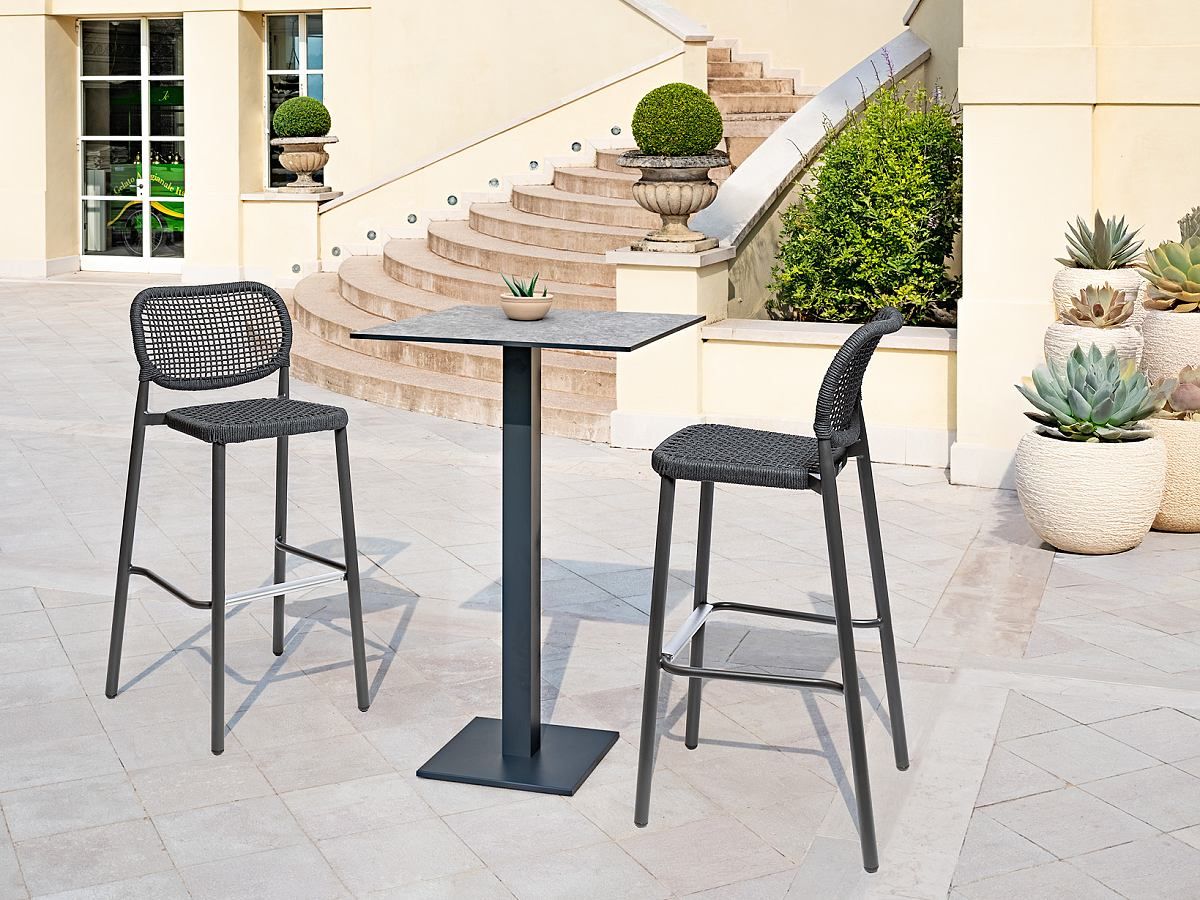 Vzdušná a elegantná barová stolička Cloe Bar je typickým predstaviteľom moderného dizajnu záhradného nábytku. Barová stolička Cloe Bar má hliníkovú konštrukciu, operadlo aj sedacia časť je ručne ovinuté syntetickým lanom a dodáva stoličke moderný vzhľad. Vďaka použitým materiálom táto stolička splňuje všetky predpoklady na to, aby mohla byť vonku počas celého roka. Tento typ stoličky je ideálnou voľbou pre terasy reštaurácií, kaviarní či barov. Stolička je dostupná v troch farebných variantách: antracit, beige a tiež v krásnej zelenej, ktoré môžete vidieť v galérii. Stolička je dostupná aj v klasickom prevedení.