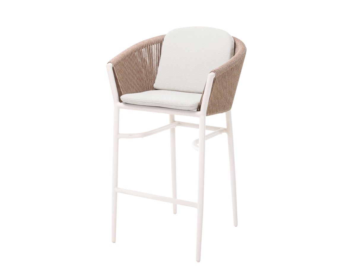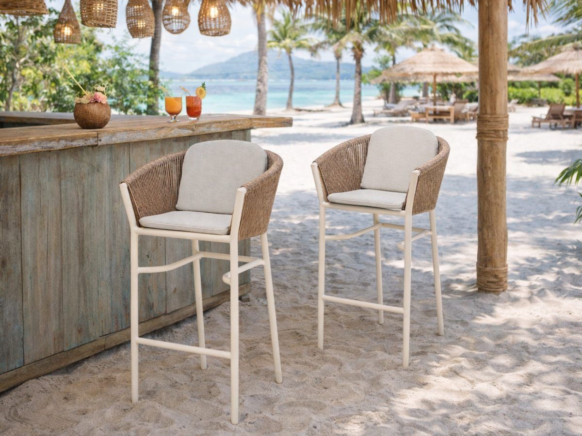Barová stolička Coconut prináša do exteriérových barových zón a vysokých jedálenských pultov nefalšovanú stredomorskú atmosféru. Vďaka svojej hliníkovej konštrukcii v jemnom odtieni Ivory a organickému výpletu pôsobí ľahko, sviežo a mimoriadne štýlovo. Je navrhnutá tak, aby poskytovala nielen vizuálny zážitok, ale aj vysoký komfort pri sedení, či už si vychutnávate rannú kávu alebo večerný drink pod hviezdami