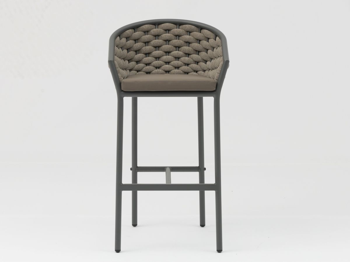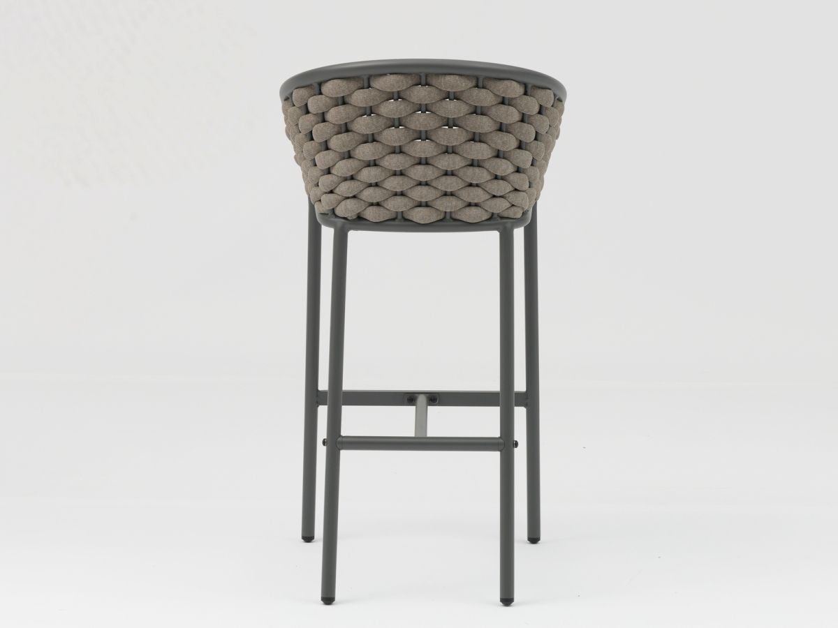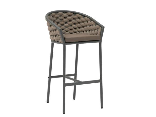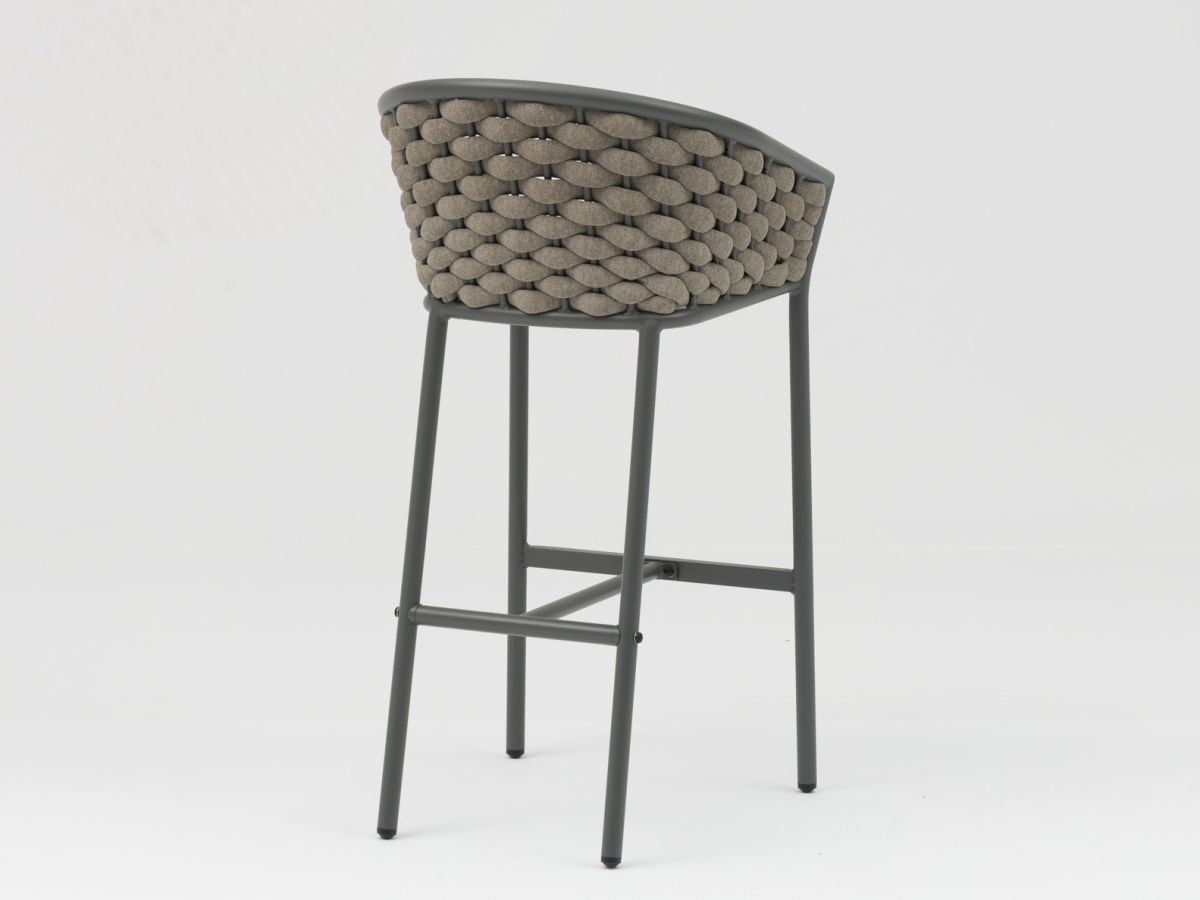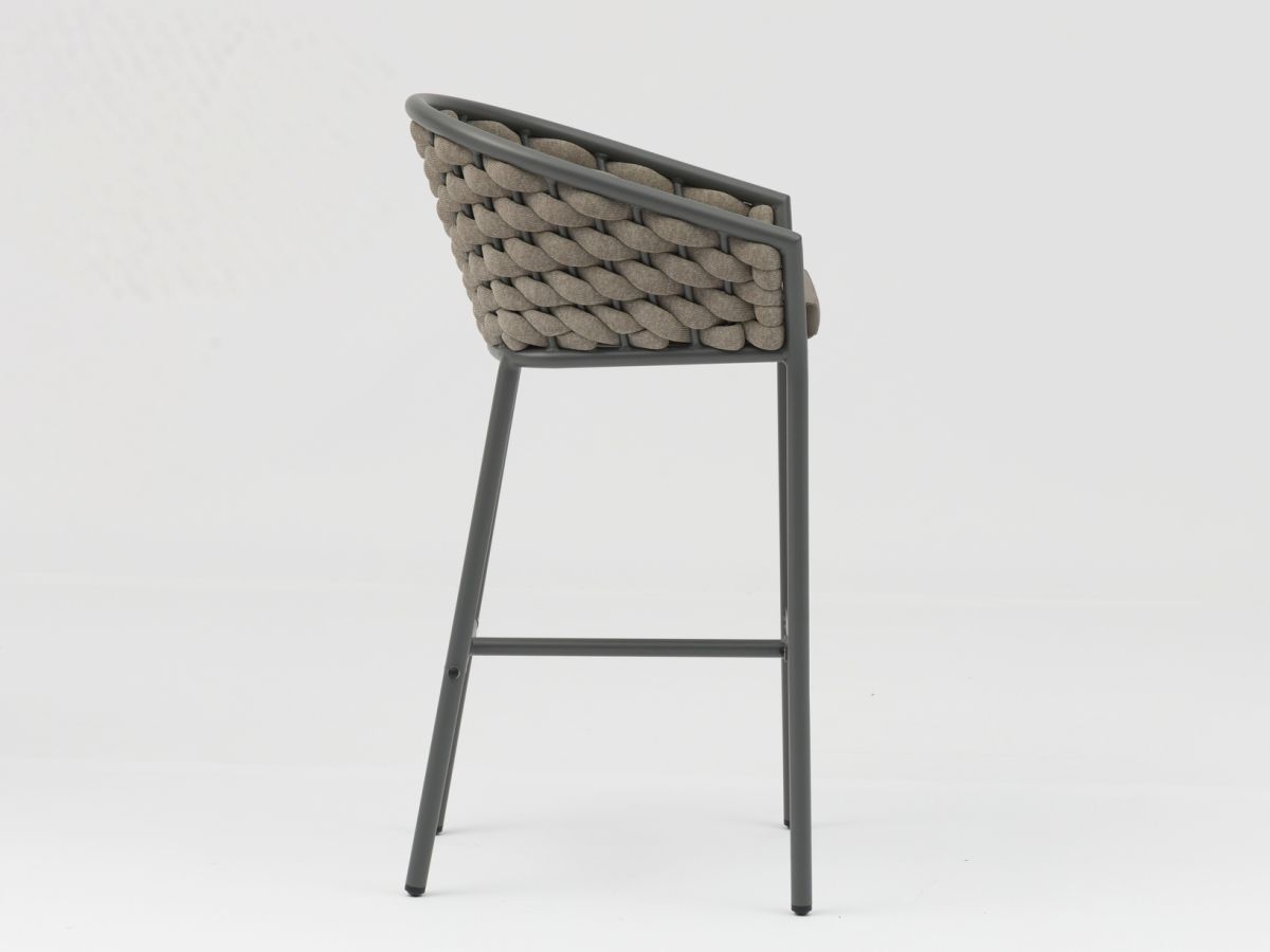 Barová stolička Kreta spája moderný, čistý dizajn s jemným nádychom remeselnej tradície. Vďaka kombinácii robustného antracitového rámu a precízne spracovaného výpletu v melírovaných prírodných tónoch pôsobí stolička veľmi štýlovo a nadčasovo. Jej hlavnou prednosťou je špeciálna výplň vankúša, ktorá zabezpečuje nielen výnimočné pohodlie, ale aj rýchlu použiteľnosť po daždi.
