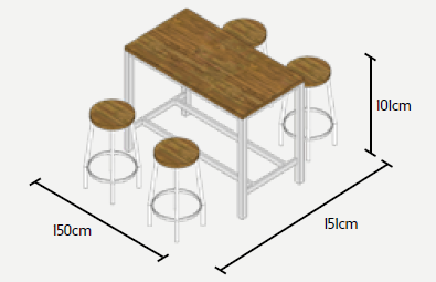 barový stôl: 150 x 90 x 99 cm