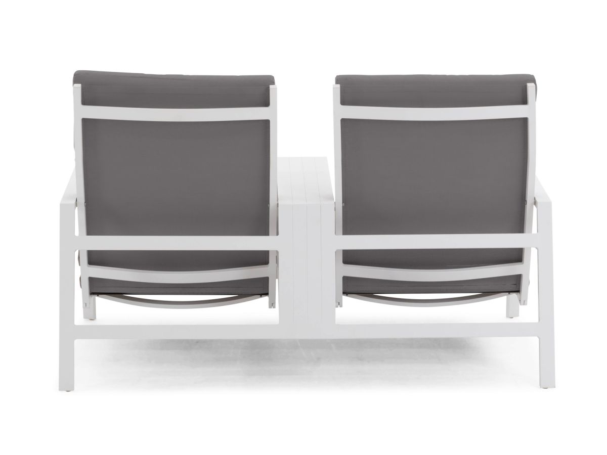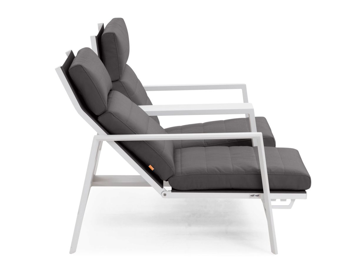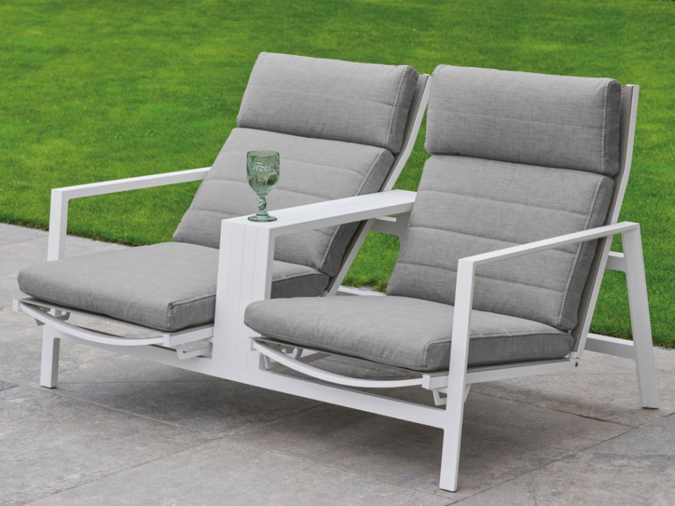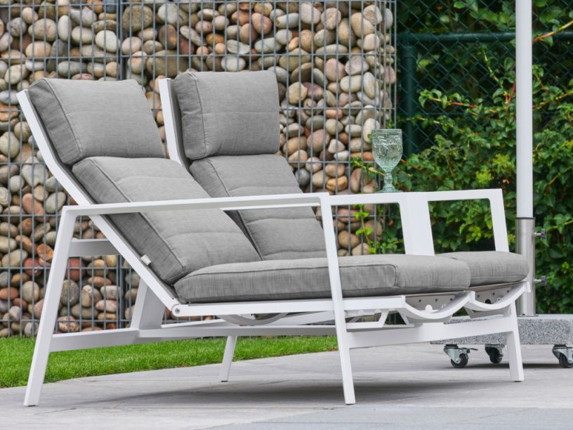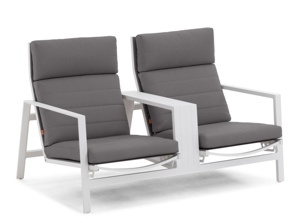 Relaxačné záhradné dvojkreslo Bondi Tete je ideálne na odpočinok po ťažkom dni v práci. Chrbtovú časť môžete sklopiť, aby ste sa mohli aj oprieť. Rám má elegantný vzhľad a je vyrobený z hliníka. Či už si chcete prečítať knihu alebo si len pohodlne sadnúť a načerpať sily po náročnom dni, toto kreslo by u Vás nemalo chýbať. Dvojkreslo je dostupné v dvoch farebných prevedeniach rámu - antracitovej a bielej. Podsedáky sú dostupné v 2 prevedeniach Mist Grey Soltex a Graphite Soltex. Na stredový rám si môžete odložiť drink alebo knihu a obe kreslá môžete nezávisle na sebe polohovať.