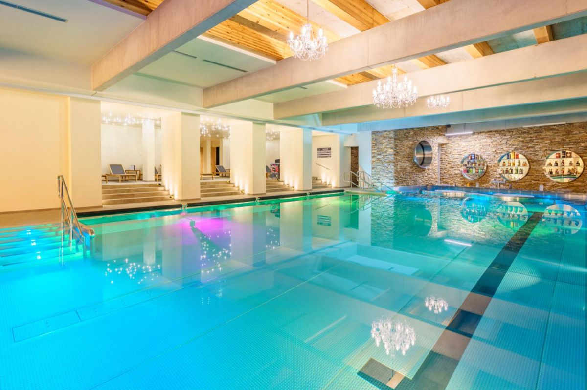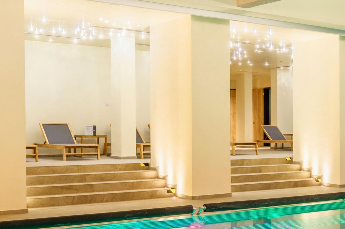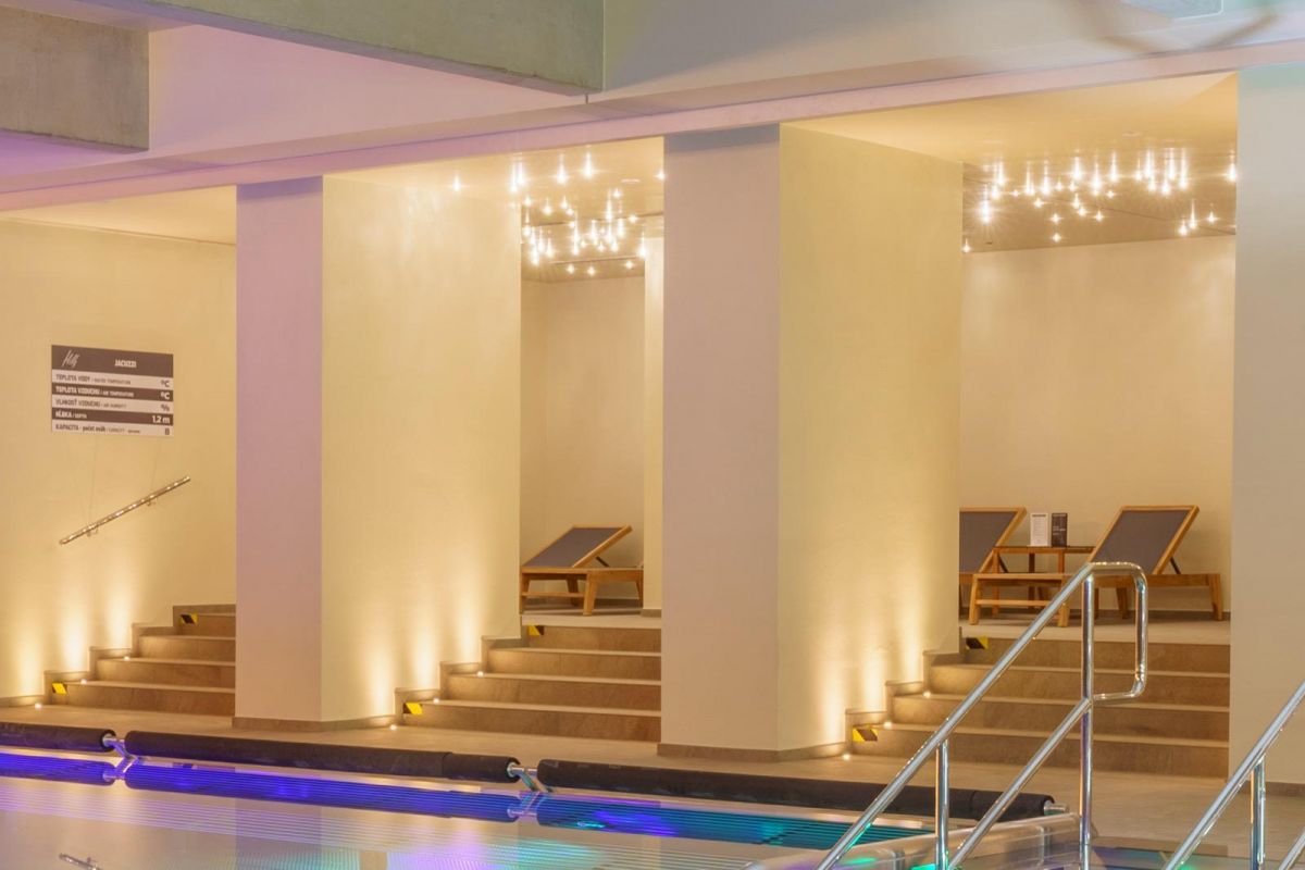 Vybavenie wellnessu hotela Hills v Starej Lesnej vo Vysokých Tatrách. Dodávali sme krásne teakové lehátka Elatis.