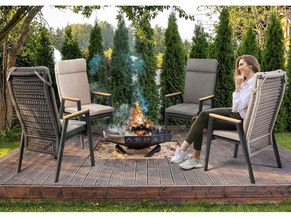 Vzdušné a veľmi pohodlné kreslo Fisherman bude ideálnym spoločníkom na dlhé letné večery. Kreslo Fisherman má hliníkovú konštrukciu v antracitovej farbe , operadlo je ručne ovinuté syntetickým lanom v béžovej farbe a dodáva mu tak moderný vzhľad. Podsedák je vodeodolný a tak sa nemusíte obávať ani letného daždu. Podrúčky sú z teakového dreva. Kreslo je sklápateľné pomocou plynovej pružiny, ktorá sa ovláda jednoduchým stlačením tlačidla na kraji podrúčky. Tento typ kresla sa ideálne hodí k veľkým rozťahovacím stolom ktoré nájdete v sekcii stoly. Kreslo Fisherman je dostupné v dvoch farebných prevedeniach.