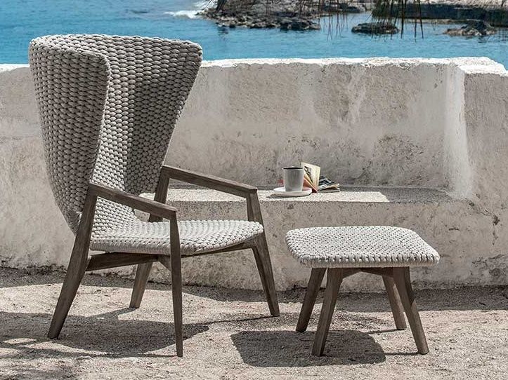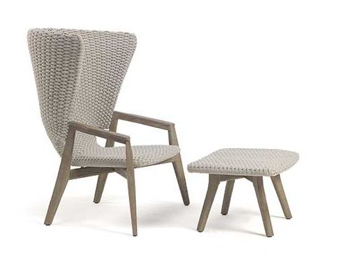 Exkluzívne záhradné kreslo Knit High Back je dokonalou syntézou estetiky a funkčnosti ergonómie. Krásne krivky, dokonalé prepletanie syntetického lana a teplo kvalitného teakového dreva z ktorého je konštrukcia tohto kresla vyrobená. K dispozícii sú dve farebné prevedenia a to čierne prepletanie s hnedým teakovým drevom alebo sivé prepletanie s moreným sivým teakom. Farebné prevedenia môžete vidieť na priloženom obrázku. Ku kreslu je možné dokúpiť podnožku a aj podsedák.