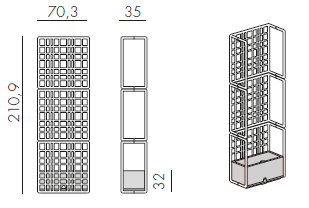 Veľmi zaujímavý exteriérový kvetináč Sipario 3 s trojposchodovým mrežovaním. Ideálny pre ťahavé kvety, kríky či menšie stromy. Je vyrobený z tvrdeného plastu, ktorý je spevnený sklenným vláknom.