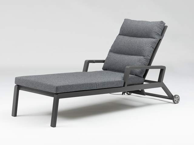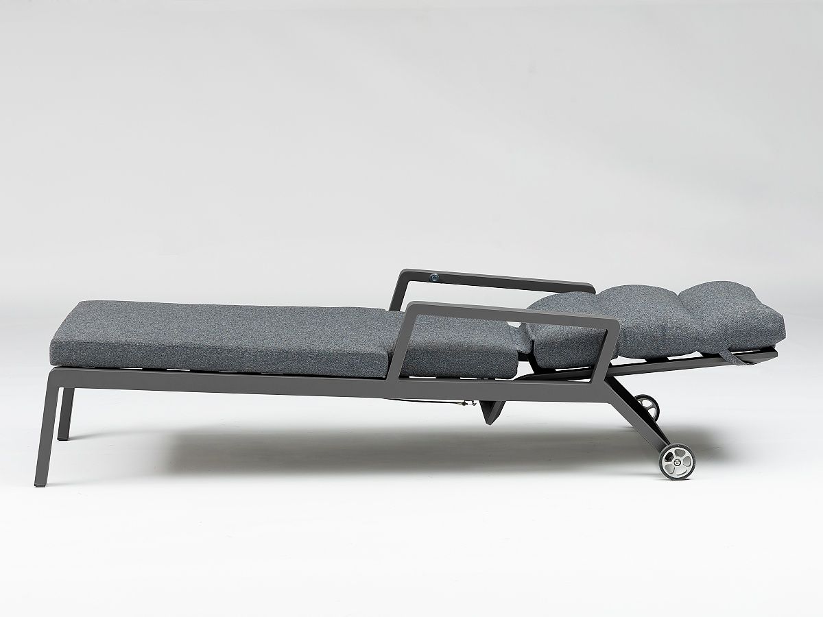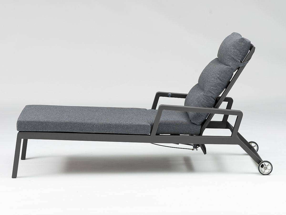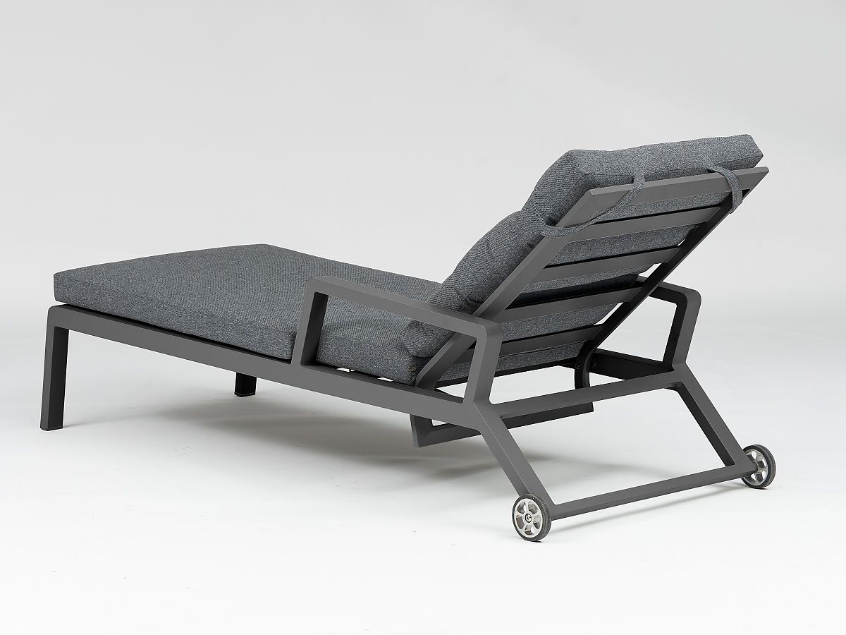 Lehátko Noel je stelesnením moderného minimalizmu v elegantnom tmavom prevedení. S výnimočnou šírkou až 90 cm poskytuje pocit slobody a maximálneho priestoru, ktorý pri bežných ležadlách nenájdete. Melírované vankúše v tmavosivej farbe sú nielen štýlové, ale aj funkčné – ich vodoodpudivá úprava a polohovateľná chrbtová opierka zaručujú ničím nerušený relax na terase či strešnej záhrade.