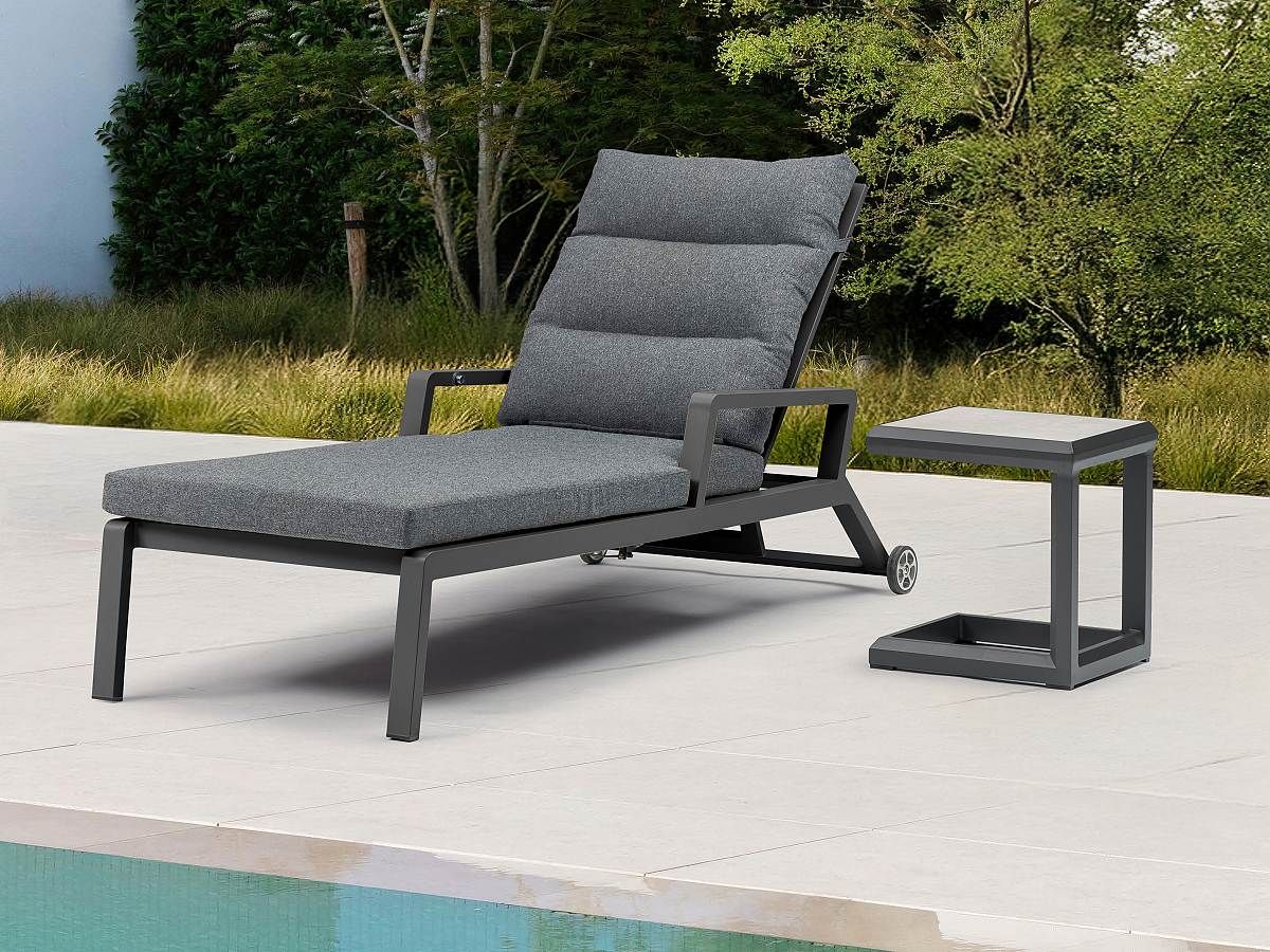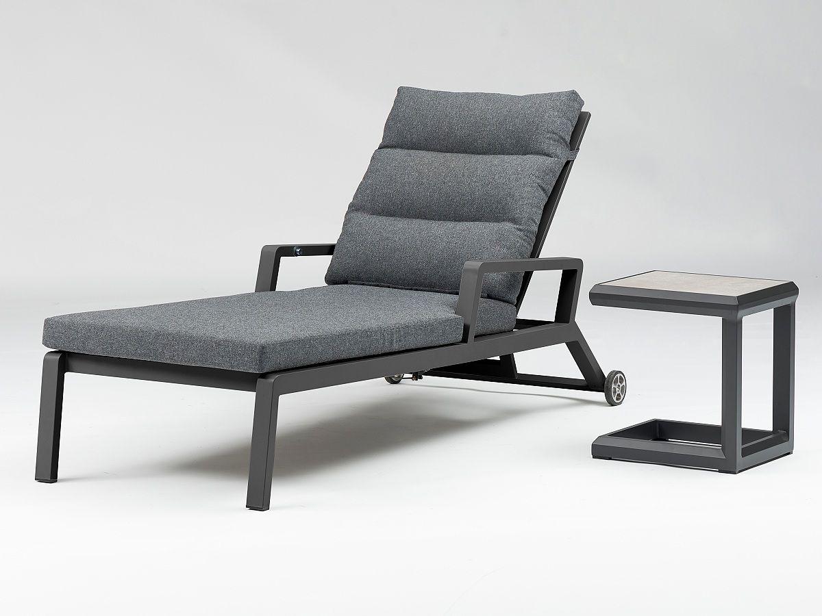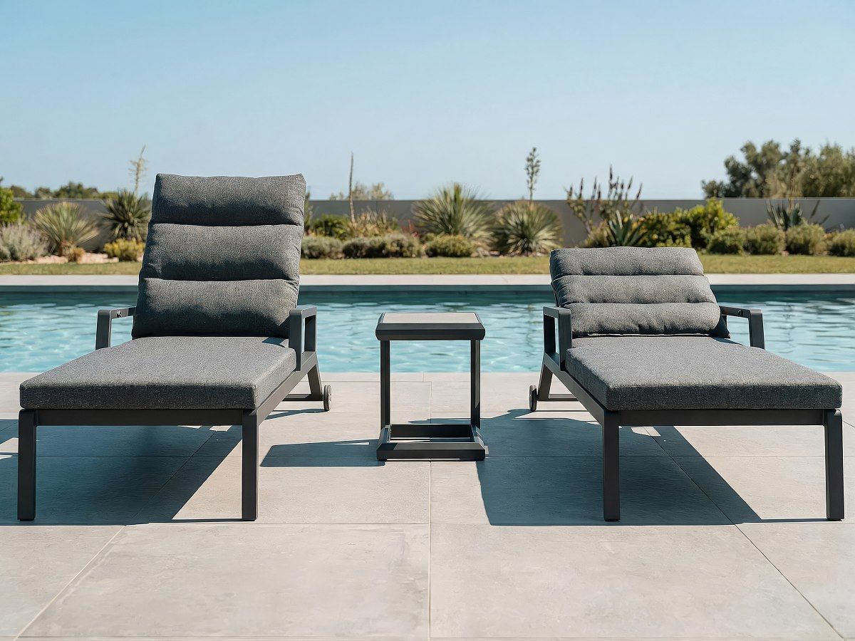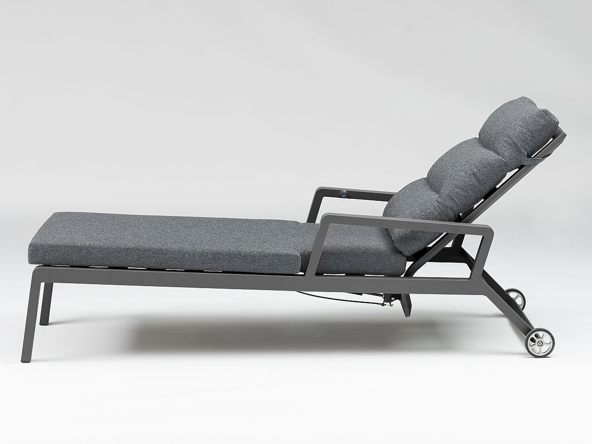Lehátko Noel je stelesnením moderného minimalizmu v elegantnom tmavom prevedení. S výnimočnou šírkou až 90 cm poskytuje pocit slobody a maximálneho priestoru, ktorý pri bežných ležadlách nenájdete. Melírované vankúše v tmavosivej farbe sú nielen štýlové, ale aj funkčné – ich vodoodpudivá úprava a polohovateľná chrbtová opierka zaručujú ničím nerušený relax na terase či strešnej záhrade.