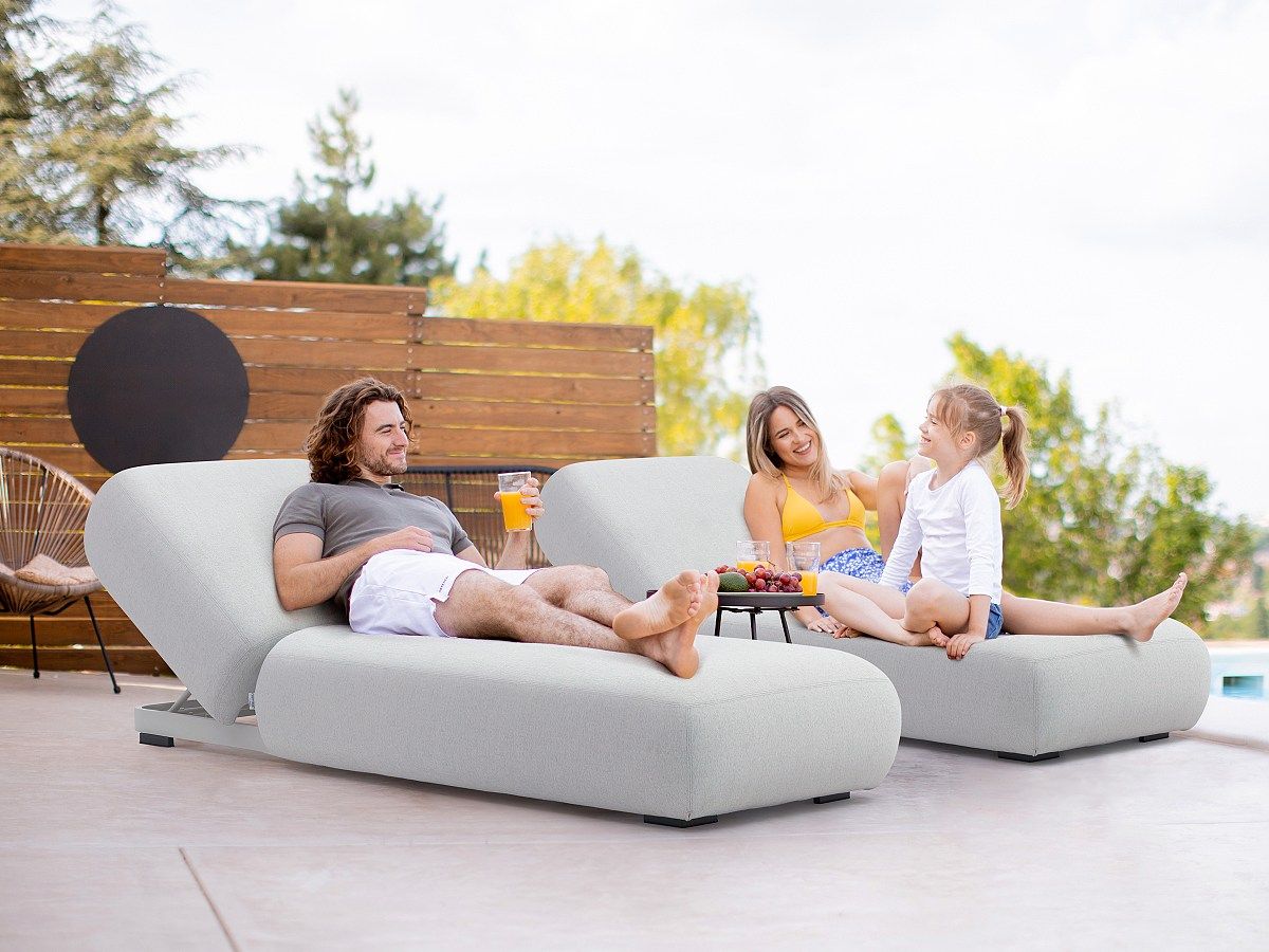 Lehátko Olala je navrhnuté pre náročných klientov, ktorí vyžadujú maximálny priestor a bezstarostné používanie. Vďaka dĺžke viac ako dva metre a šírke 80 cm poskytuje kráľovský komfort. Hlavným benefitom je špeciálny poťah Coutex, ktorý je plne vodoodolný (waterproof), takže hostia môžu na ležadlo vyjsť priamo z bazéna bez obáv z poškodenia alebo dlhého schnutia polstrovania.