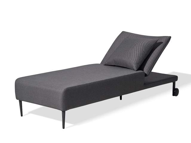 Nádherné lehátko Saint Tropez Antracit je dokonalým príkladom moderného ponímania exteriérového nábytku. Konštrukcia lehátka je vyrobená z hliníku a je striekaná práškovou farbou. Celé lehátko je potiahnuté špeciálnou vodeodolnou látkou Axroma, vďaka ktorej môže byť lehátko vonku alebo vo vlhkom prostredí po celý rok. Lehátko má viacstupňové polohovanie operadla. Lehátko Saint Tropez je dostupné v dvoch farebných prevedeniach a to antracit a creme a je tiež dostupné aj ako dvojlehátko Saint Tropez Duo, ktoré najdete v sekcii ležadlá.