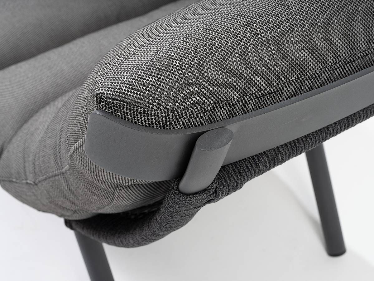 Set Barbados Antracit je navrhnutý pre tých, ktorí hľadajú maximálny komfort kresla spojený s možnosťou úplného natiahnutia nôh. Set Barbados má elegantný výplet v tmavosivej farbe a na konštrukcii v odtieni antracit pôsobí jemne a sofistikovane. Vďaka použitiu špičkovej látky Axroma na vankúšoch získavate set, ktorý je nielen štýlový, ale aj mimoriadne odolný voči vonkajším vplyvom.