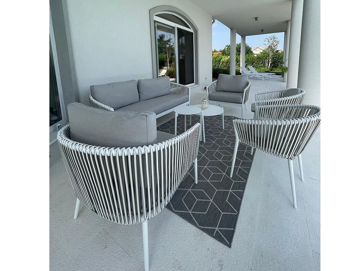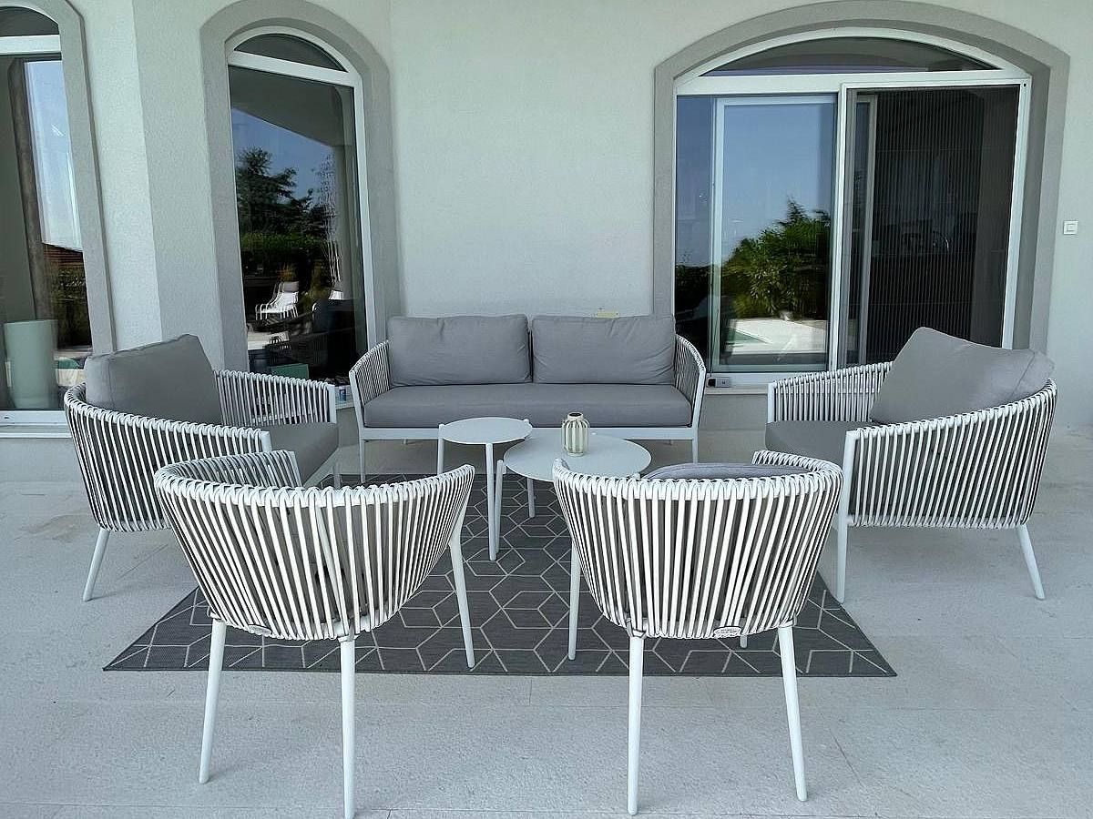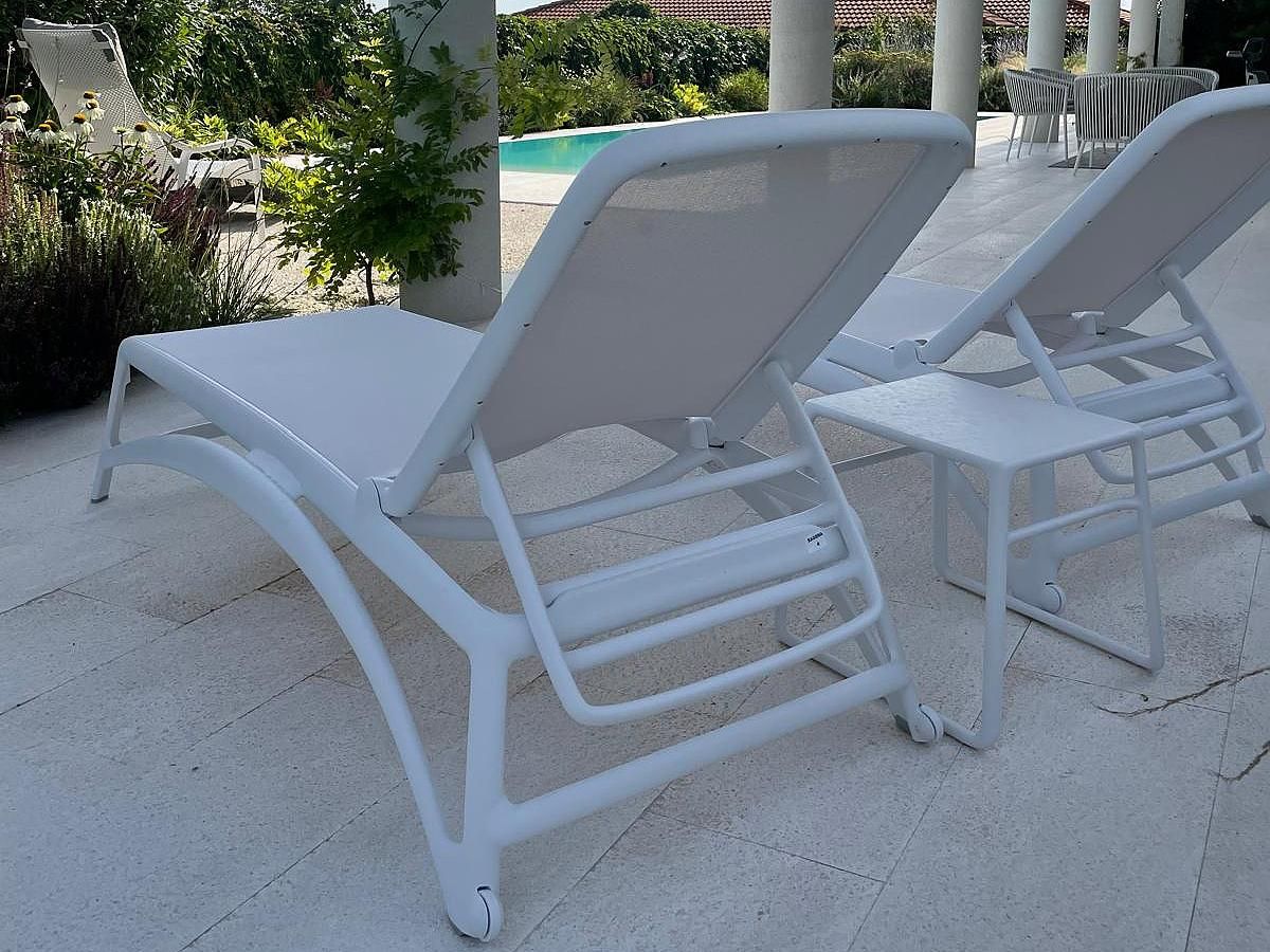 Vybavenie luxusnej terasy krásnou sedacou súpravou Bahamas White a v rovnakom štýle sme doladili aj stolovú súpravu s kreslami Bahamas a stolom Long Island White. Bazénovú časť krásne zvýraznili lehátka Atlantico a kreslá Net Lounge.