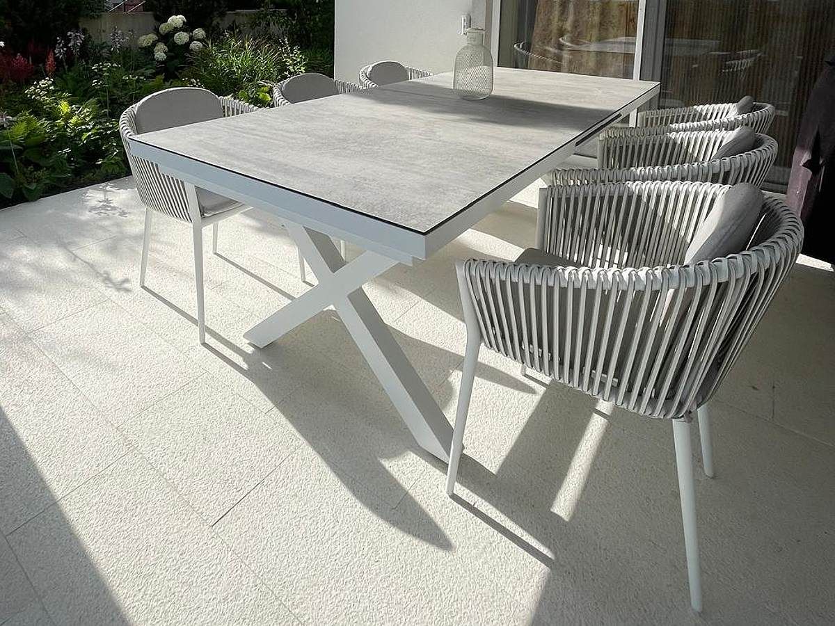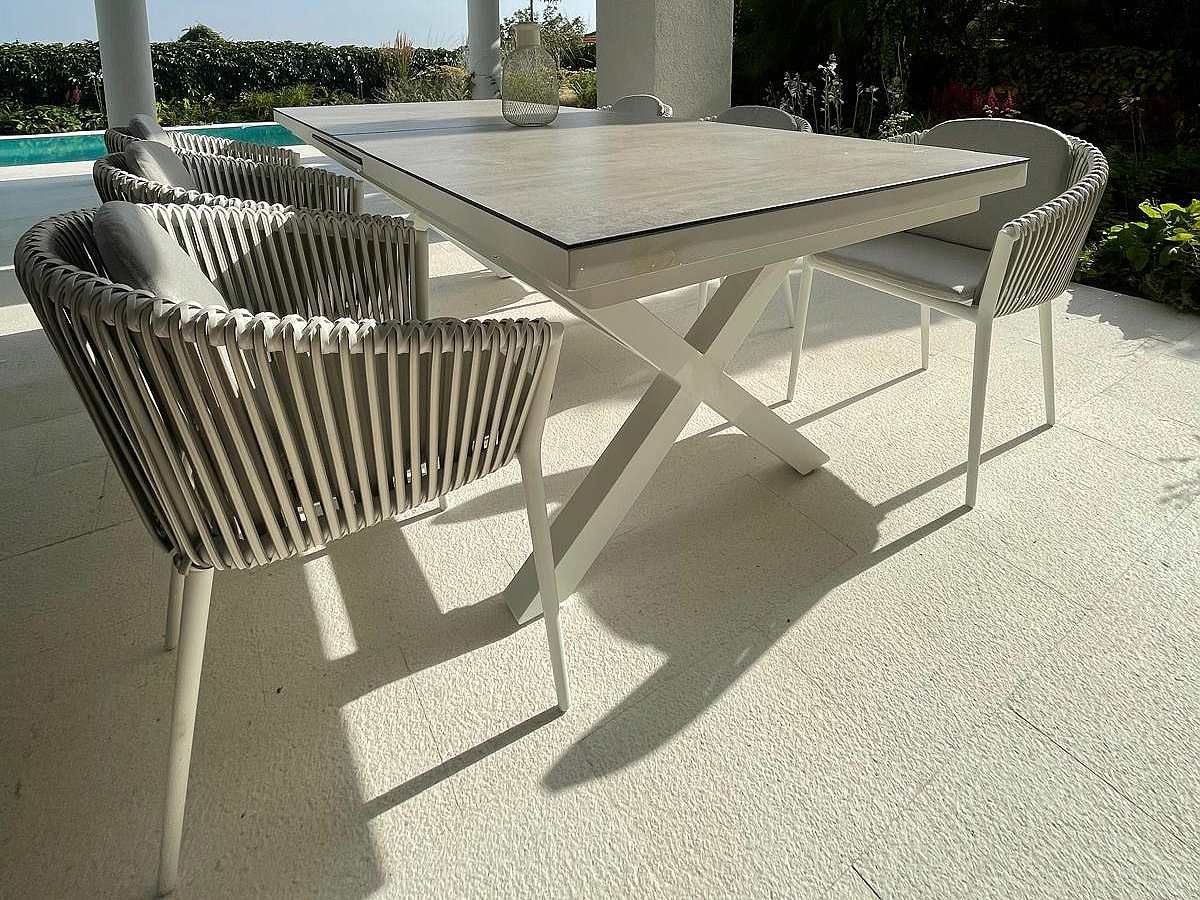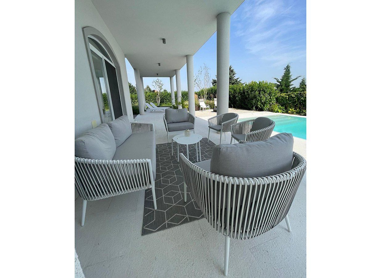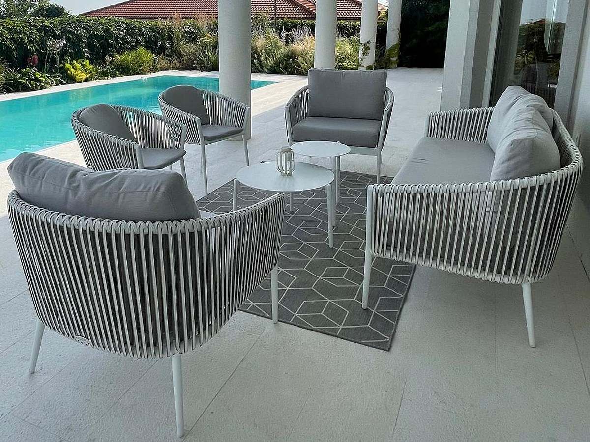 Vybavenie luxusnej terasy krásnou sedacou súpravou Bahamas White a v rovnakom štýle sme doladili aj stolovú súpravu s kreslami Bahamas a stolom Long Island White. Bazénovú časť krásne zvýraznili lehátka Atlantico a kreslá Net Lounge.