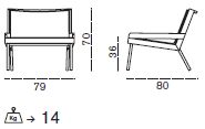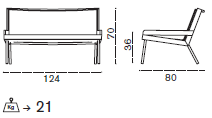 dvojsedačka: 124 x 80 x 70 x 36 cm