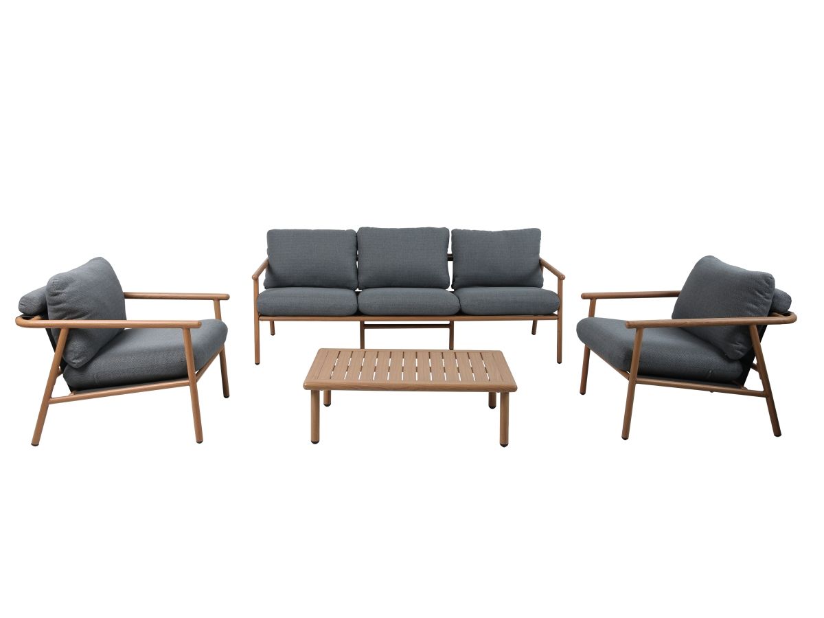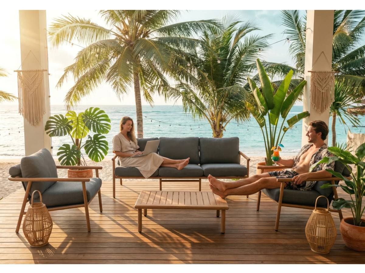 Súprava Bali prináša do vášho exteriéru uvoľnenú atmosféru prímorského letoviska. Jej dizajn majstrovsky kombinuje estetiku prírodného dreva s modernou odolnosťou hliníka, čím vytvára vizuálne teplý, no pritom absolútne bezúdržbový celok. Vďaka čistým líniám a komfortnému polstrovaniu je táto lounge súprava dokonalým miestom na oddych na terase, balkóne či v hotelových exteriéroch.
