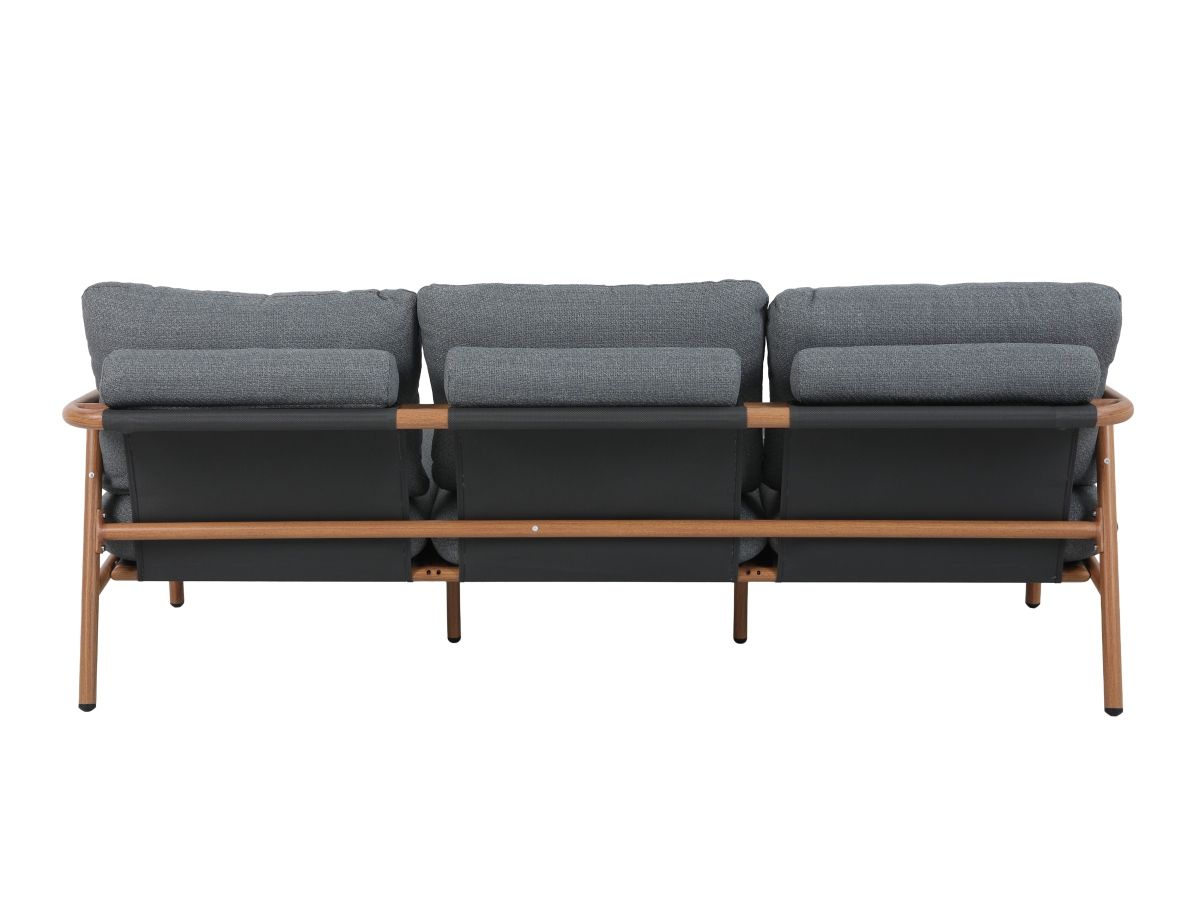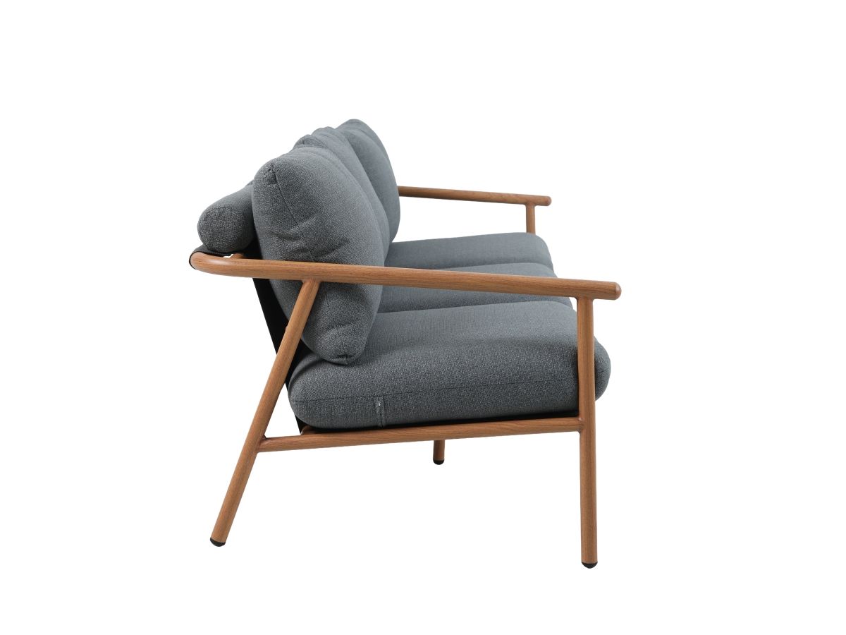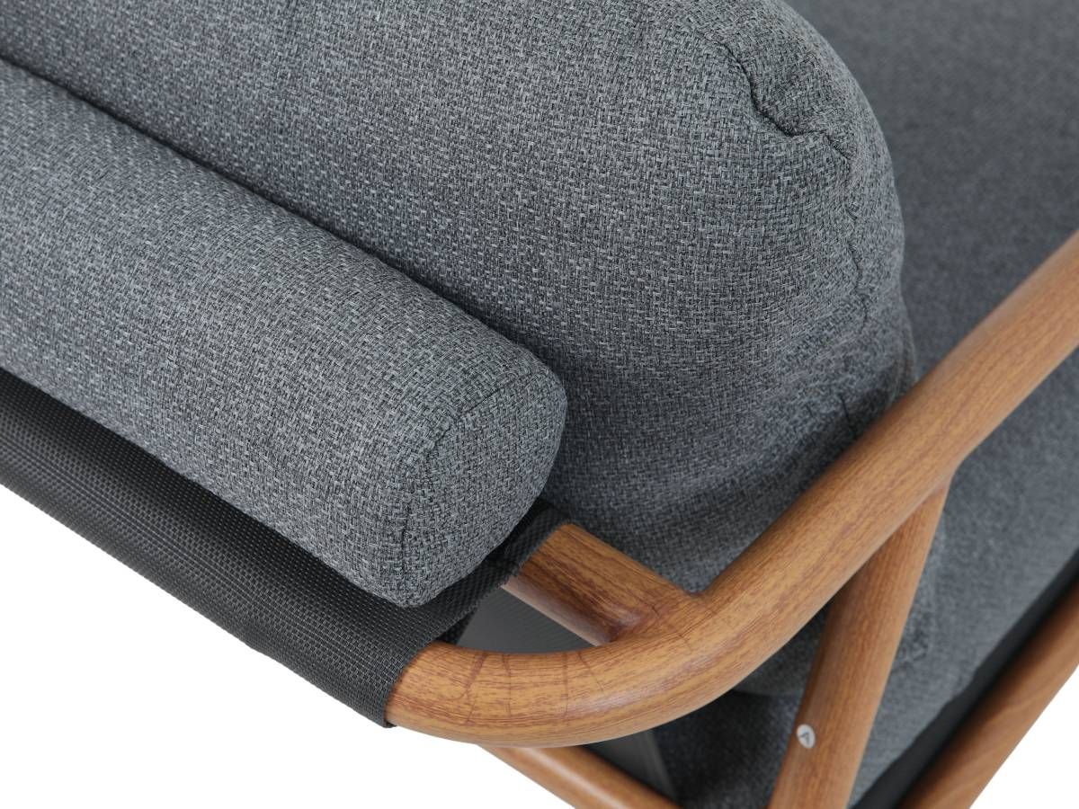 Výplň a textílie: Sedadlá sú tvorené odolnou antracitovou tkaninou (textilén) a doplnené o hrubé tmavosivé vankúše, ktoré sú vodoodpudivé a ideálne pre vonkajšie použitie.