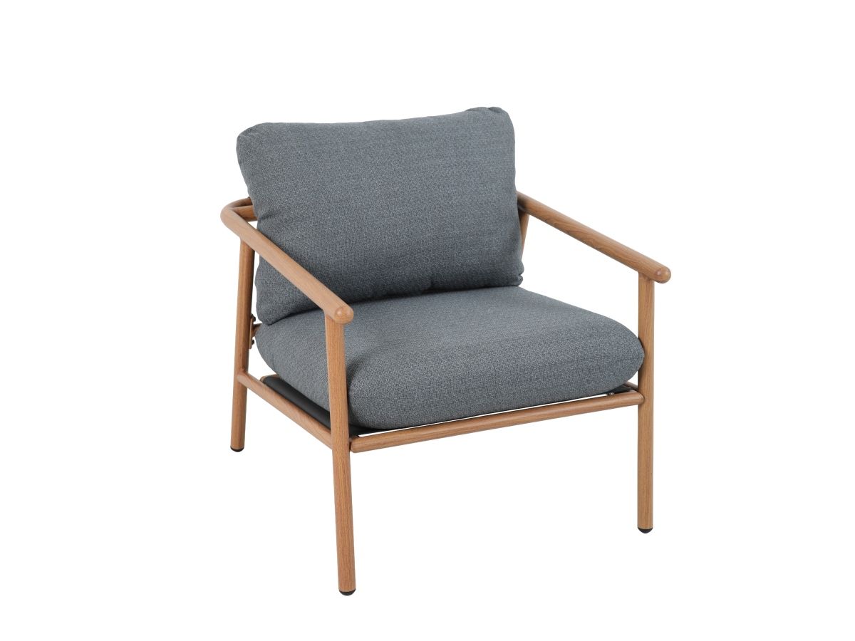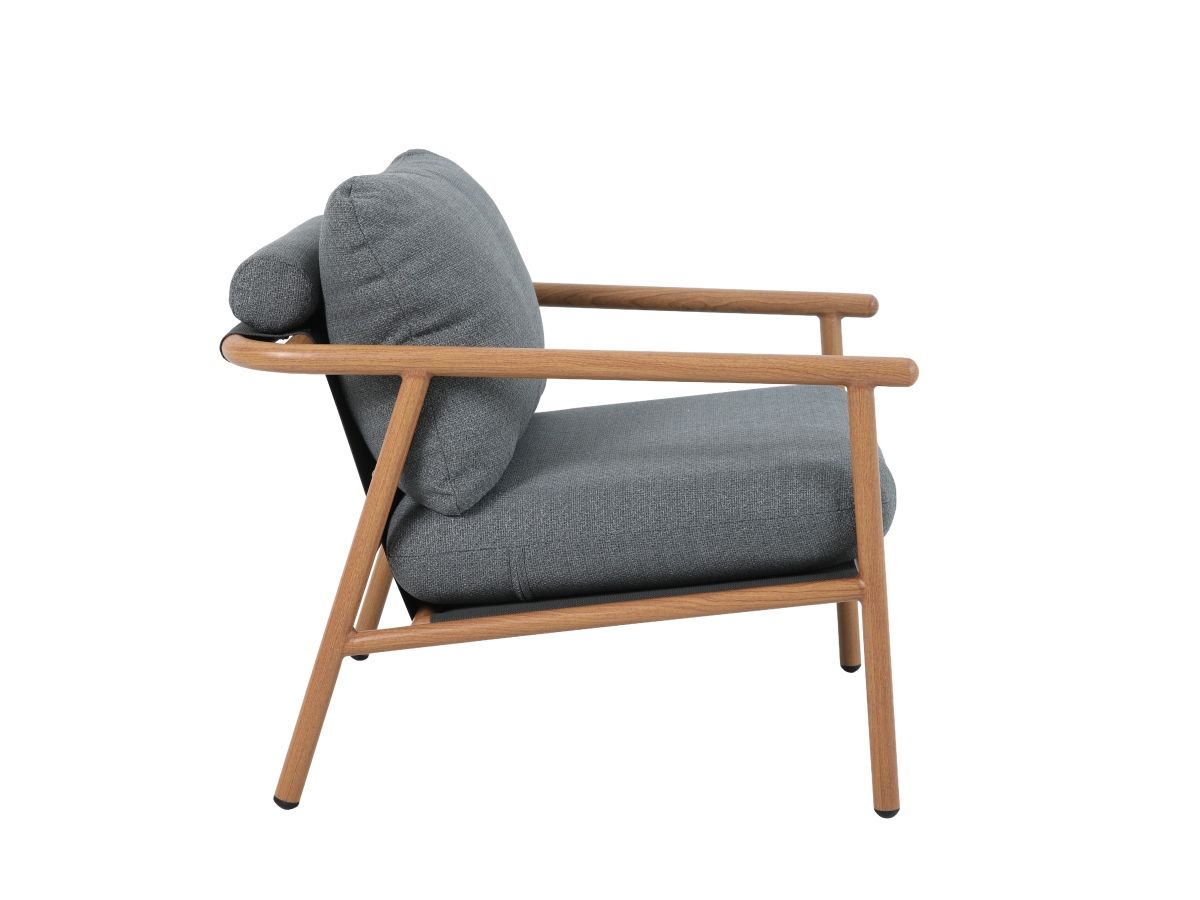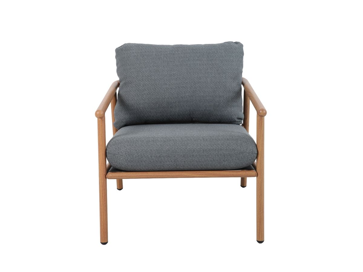 Výplň a textílie: Sedadlá sú tvorené odolnou antracitovou tkaninou (textilén) a doplnené o hrubé tmavosivé vankúše, ktoré sú vodoodpudivé a ideálne pre vonkajšie použitie.
