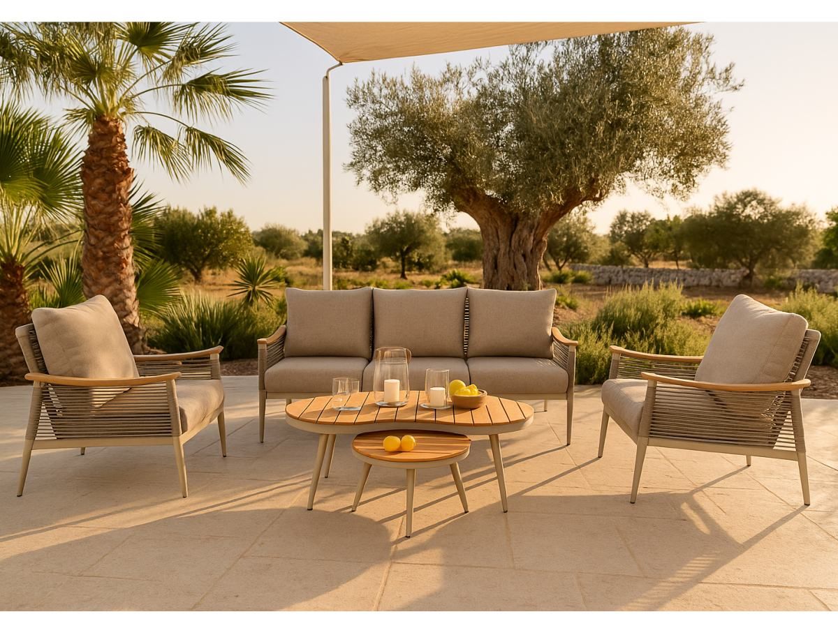 Súprava Berne predstavuje vrchol elegancie a luxusu pre vaše vonkajšie priestory. Jej sofistikovaný dizajn v jemných tónoch šampanského v kombinácii s teplým odtieňom teakového dreva vytvára atmosféru, ktorá okamžite pozýva k relaxácii. Tento set nie je len nábytkom, je to komplexné riešenie pre vytvorenie reprezentatívnej lounge zóny, kde sa snúbi prvotriedny komfort s vycibreným vkusom.
