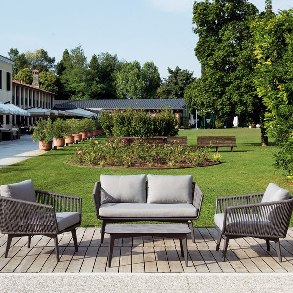 Elegantná a moderná záhradná sedacia súprava Diva je na prvý pohľad zaujímavým typom exteriérového nábytku. Konštrukcia sedacej súpravy je hliníková a je striekaná práškovou farbou. Výplet je tkaný mäkkým lanom a dodáva celému dizajnu moderný vzhľad. Vankúše sú z polyesterovej tkaniny, sú vodeodpudivé a majú snímateľné poťahy. Konferenčný stolík má HPL kompaktnú stolovú dosku s hrúbkou 12 mm a konštrukciu z hliníku. Jednotlivé moduly a ich rozmery môžete vidieť v priloženom obrázku.