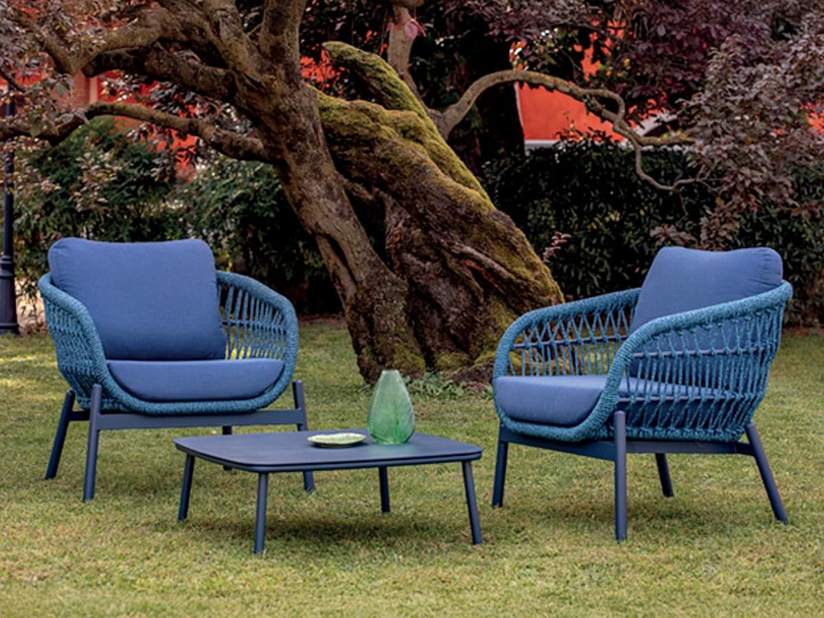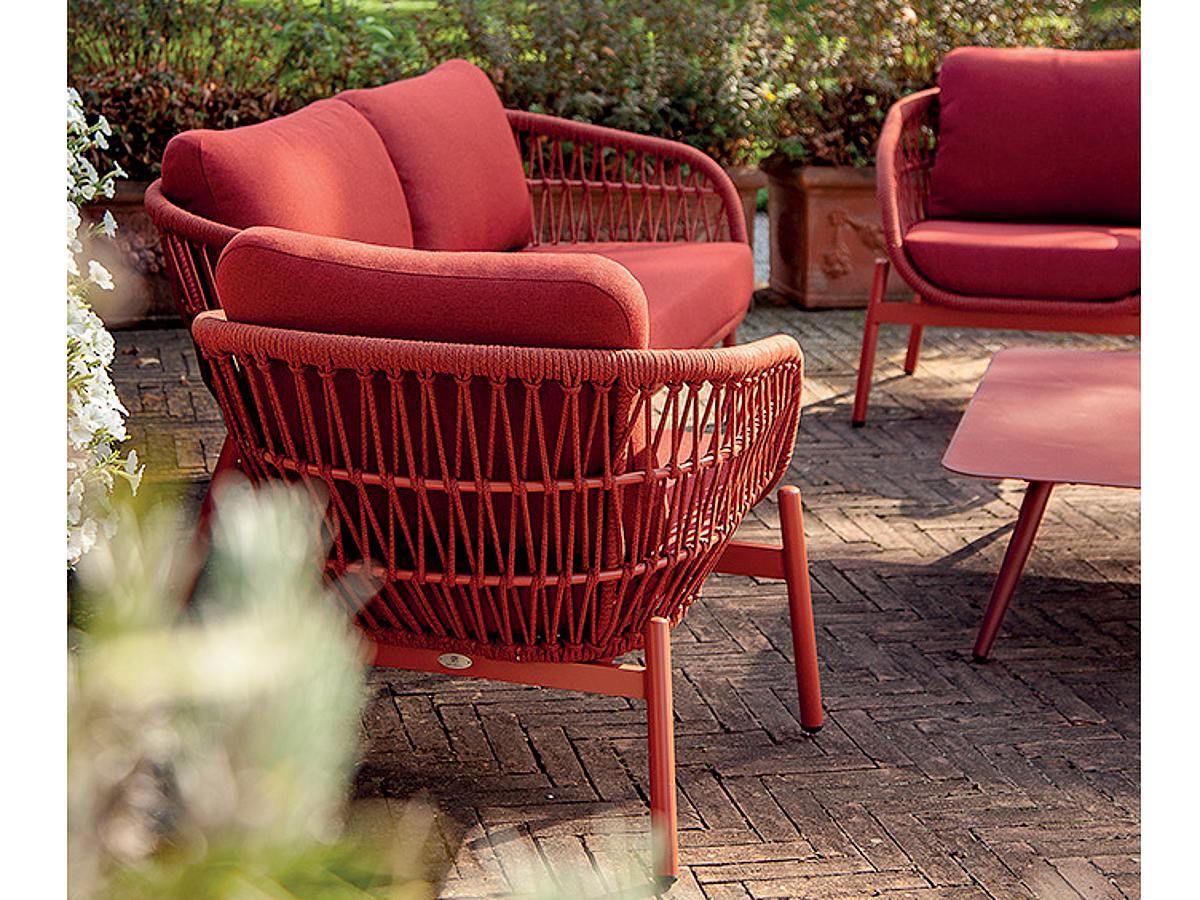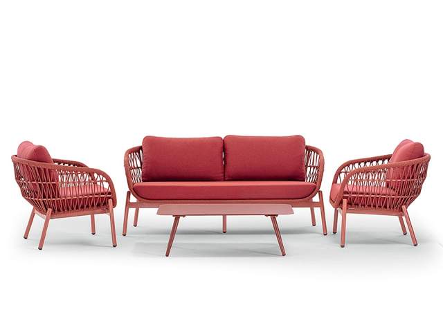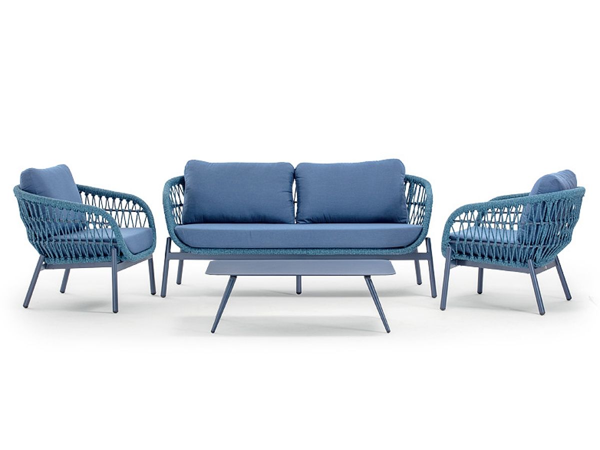 Nadčasová a originálna záhradná sedacia súprava Elba Rope Vás zaujme na prvý pohľad svojim moderným dizajnom a netradičnými farbami. Konštrukcia sedacej súpravy je z hliníku a je striekaná práškovou farbou v červenej alebo modrej farbe. Výplet sedacej súpravy je ovinutý syntetickým rýchloschnúcim lanom. Podsedáky a opierkové vankúše sú v červenej alebo modrej farbe a sú z materiálu Olefin s rýchloschnúcou penou Quick Dry Foam, ktorý je vhodný do exteriéru. Sedaciu súpravu Elba Rope nádherne doplňuje konferenčný stolík, ktorý je dostupný v oboch farbách - modrej aj červenej.