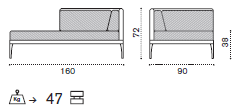 odpočinkový modul ľavý/pravý: 160 x 90 x 72 x 38 cm