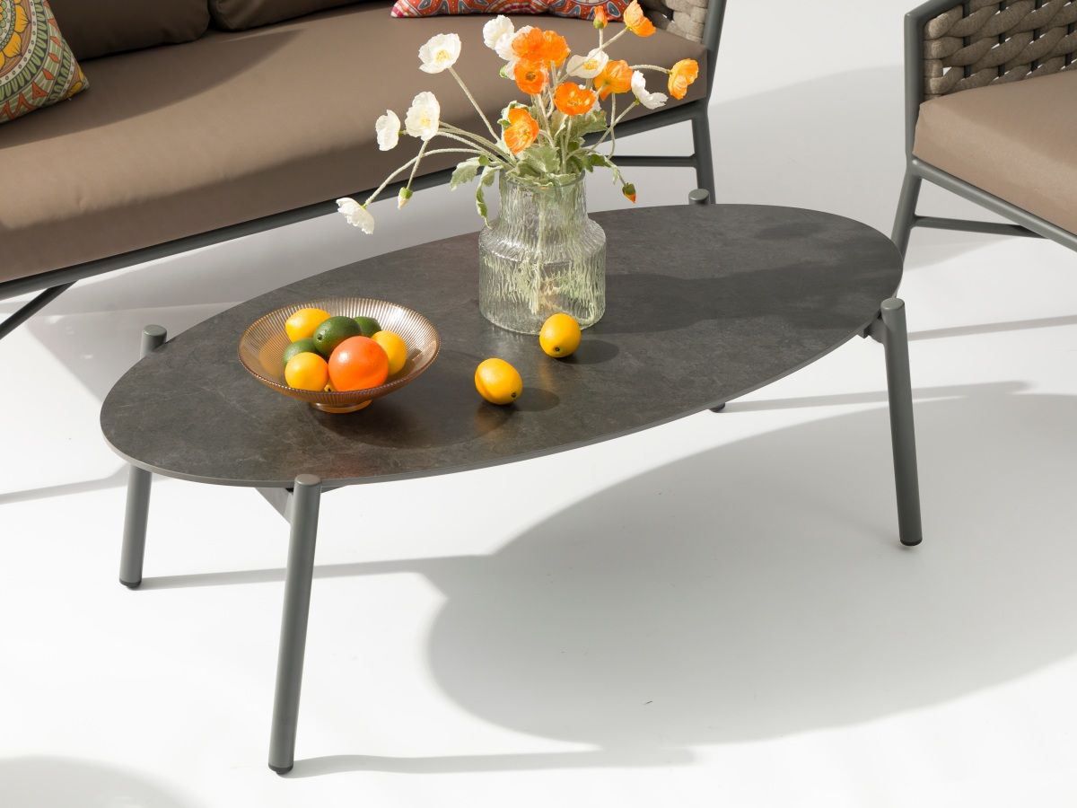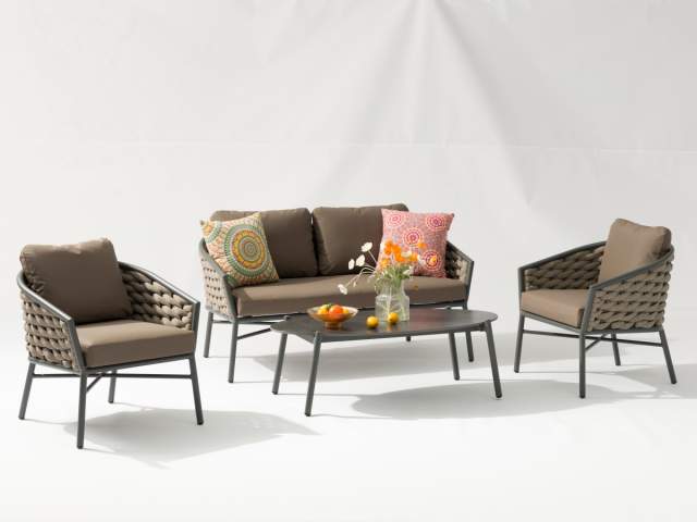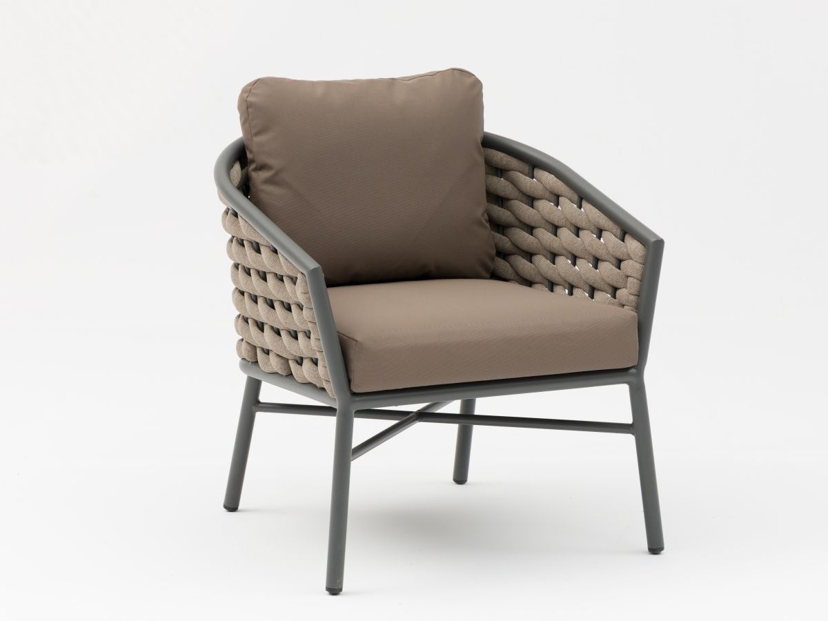 • Čalúnenie: Textilný poťah v odtieni taupe, ktorý je vysoko odolný voči poveternostným vplyvom.