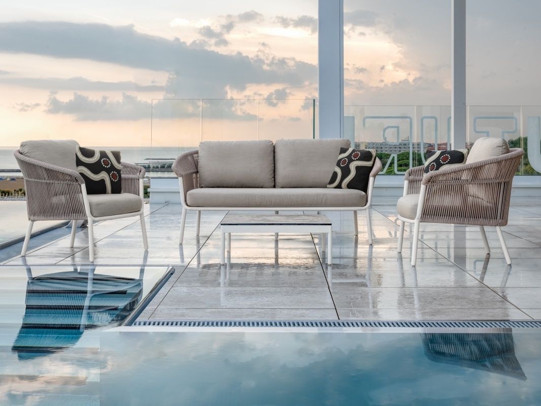 Elegantná a dizajnová záhradná sedacia súprava Lake bude hviezdou každej terasy. Konštrukcia sedacej súpravy je hliníková a je striekaná práškovou farbou. Operadlá na kreslách a dvojsedačke sú ovinuté tkaným syntetickým lanom a dodáva celému dizajnu nádych modernizmu.  Podsedáky maju snímateľné poťahy a sú pokrýte 100% polyesterovou látkou, ktorá je vodeodpudivá. Konferenčný stolík má konštrukciu z hliníku a stolová doska je 12mm HPL Compact. Sedacia súprava je dostupná v dvoch farebných prevedeniach a to Antracit/Antracit a Bianco/ Beige. V rovnakom dizajne máme aj stoličky Lake ak by ste chceli zladiť sedaciu a stolovú súpravu.