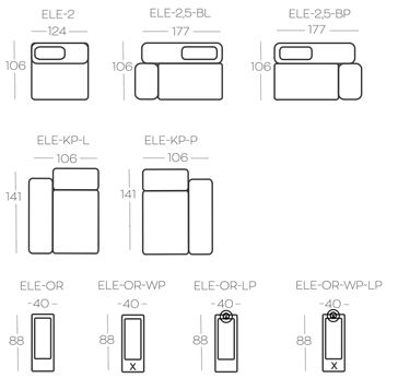 1x otvorená 2,5-sedačka s operadlom vľavo (ELE-2,5-BL)