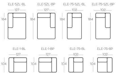 rohový modul XL s operadlom vľavo (ELE-1-BL)