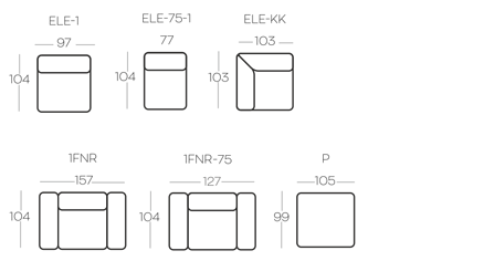 rohový modul s operadlom vpravo (ELE-75-BP)