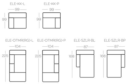 rohový modul s operadlom vpravo ( ELE-KK-P )
