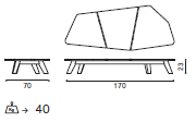 stolík: 170 x 70 x 23 cm