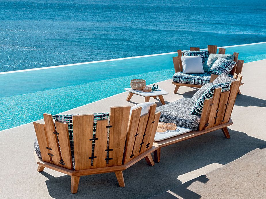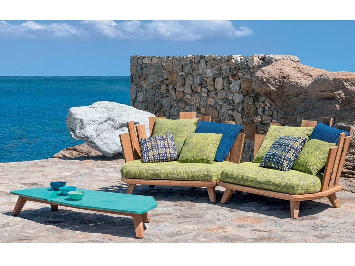 Očarujúca záhradná sedacia súprava Rafael je vrcholom talianskeho citu pre dizajn. Sedacia súprava Rafael bude určite hlavnou hviezdou každého exteriéru vďaka svojmu neobvyklému dizajnu a silnému charakteru, ktorý je ovplyvnený všestrannosťou a pominuteľnosťou prírody. Konštrukcia jednotlivých modulov sedacej súpravy je z prémiového teakového dreva doplnená kovovými svorkami, ktoré dodávajú nádych remeselnej zručnosti. Celkový charakter krásne dopĺňajú vankúše a matrac, ktorý je dostupný vo viacerých farebných prevedeniach, ktoré môžete vidieť nižšie v priloženom obrázku. Konferečný stolík Rafael zo stolovou doskou z mramorového alebo lávového kameňa nádherne dopĺňa túto výnimočnú sedaciu súpravu.