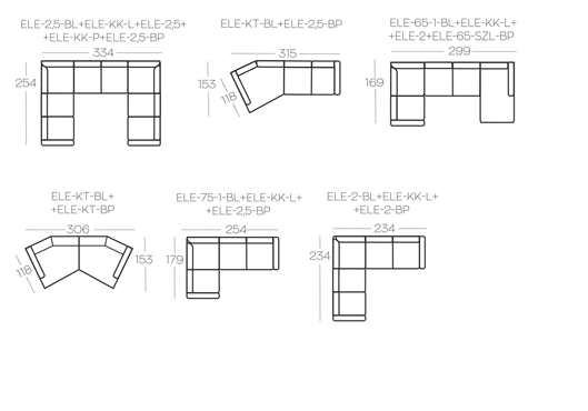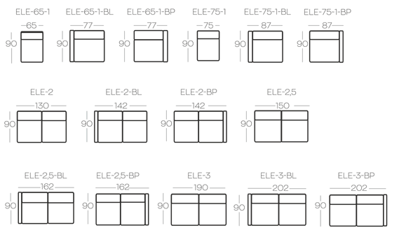 otvorená 2,5-sedačka bez operadiel (ELE-2,5)
