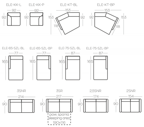 2,5-sedačka s operadlom vpravo (ELE-2,5-BP)