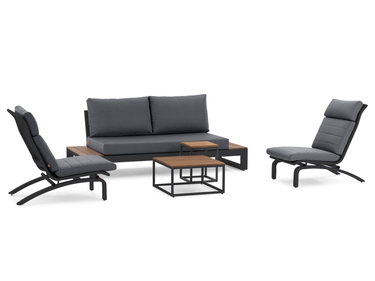 Záhradná sedacia súprava Soho Felix je perfektnou voľbou pre ľudí, ktorí si radi vychutnávajú čas strávený na letnej terase. Sedacia súprava má hliníkovú konštrukciu v antracitovej farbe, bočné stolíky na dvojsedačke a aj konferečné stolíky majú teakové drevo najvyššej kvality. Matrace a vankúše môžu byť celoročne používané vonku vďaka použitým outdoorovým materiálom. Na výber je z All Weather Cushions, Mist Grey Soltex alebo Graphite Soltex. Kvôli týmto kombináciam materiálov je záhradná sedacia súprava Soho Felix elegantnou voľbou ako zveľadiť Váš exteriér. Pri správnom výbere poťahov Vám radi poradíme.