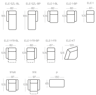 rohový modul rozťahovací s operadlom vľavo (ELE-1FR-BL)
