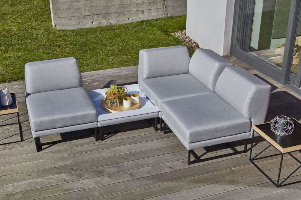 Krásna subtilná sedacia súprava Wave ponúka všetko, čo má moderný záhradný nábytok spĺňať. Vďaka použitiu technológií táto exteriérová sedacia súprava na prvý pohľad vyzerá, ako by ste ju vytiahli z obyvačky. Sedacia súprava je potiahnutá exteriérovou látkou Sunbrella (môže byť aj látkou Silvertex) a použitý systém ,,water goes thru’’ zabezpečuje, že sedaciu súpravu môžete nechať celoročne vonku. Ak na ňu naprší, tak voda jednoducho rýchlo pretečie cez sedačku a rýchlo aj vyschne. Sedacia súprava Wave navyše ponúka možnosť modulovania, takže si ju môžete vyskladať podľa svojich predstáv alebo ako Vám priestor dovoľuje. Farby si volíte podľa seba a vo výbere Vám veľmi radi pomôžeme. Jednotlivé moduly a ich rozmery môžete vidieť v priloženom obrázku.