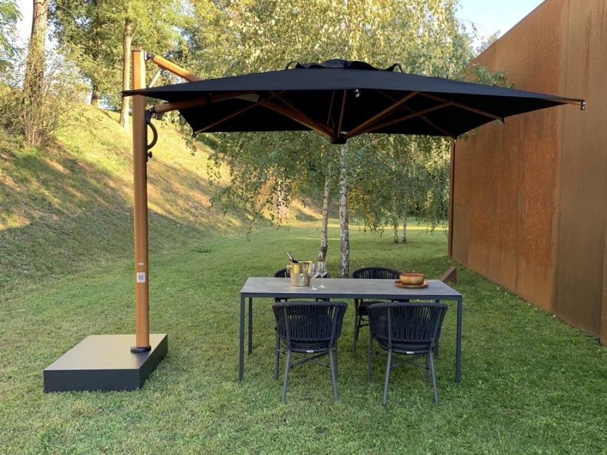 Slnečník Astro Timber od renomovanej talianskej spoločnosti Scolaro. Konštrukcia slnečníka je zo silného hliníkové rámu, ktorý je v imitácii dreva . Veľmi ľahko ho môžete naklopiť horizontálne ale aj vertikálne a dá sa ním otáčať o 360° okolo hlavnej osi. Súčasťou slnečníka je oceľový podstavec. Ostatné komponenty ako skrutky, matice a iné sú z nerezovej ocele. Tieniaca plachta slnečníku je vyrobená z akrylu, ktorá odpudzuje vodu a nečistoty. Hustota akrylovej látky je 350 gr/m². Slnečník Astro Timber je dostupný aj vo veľkosti 3,5 x 3,5 m a 3 x 4 m a je tieniaca plachta je dostupná v 8 farebných kombináciách.