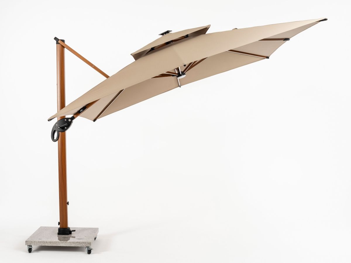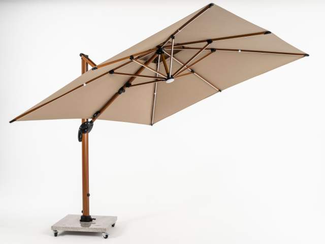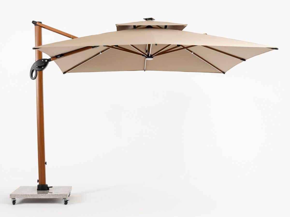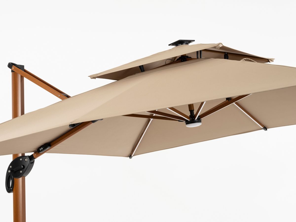 Slnečník Roma Wood je dokonalou symbiózou modernej technológie a nadčasového prírodného dizajnu. Hliníková konštrukcia s precíznym dreveným dekorom prináša na terasu hrejivú estetiku, pričom si zachováva všetky prednosti kovu – vysokú stabilitu, odolnosť a dlhú životnosť. Tento bočne zavesený „ampel“ slnečník je navrhnutý pre maximálny užívateľský komfort a večernú pohodu. Integrované LED osvetlenie v ramenách slnečníka vykúzli po západe slnka nezameniteľnú atmosféru, zatiaľ čo jeho flexibilita vám umožní užívať si tieň presne tam, kde ho práve potrebujete.