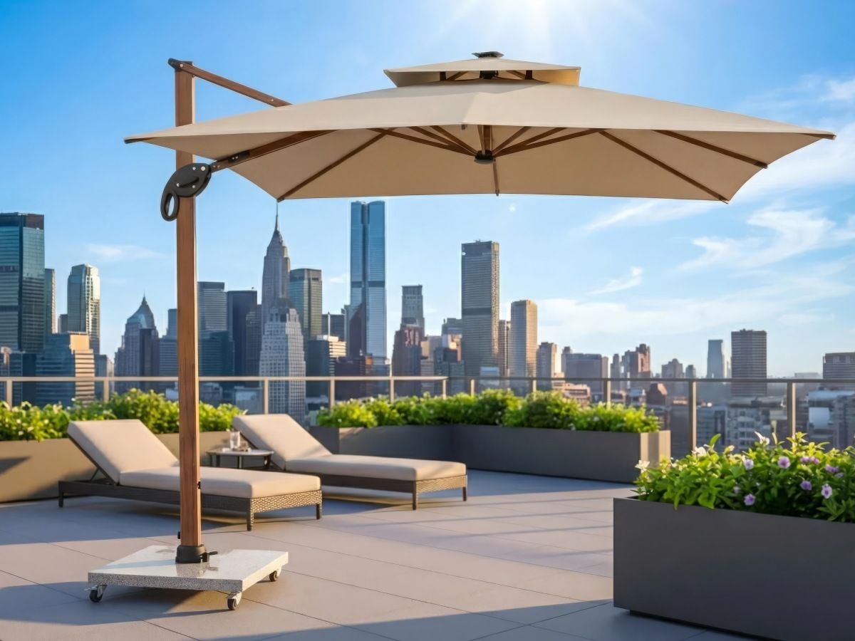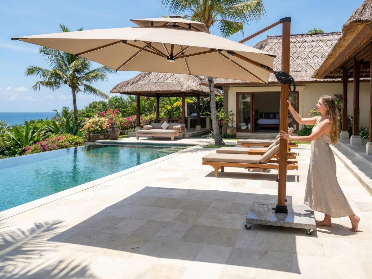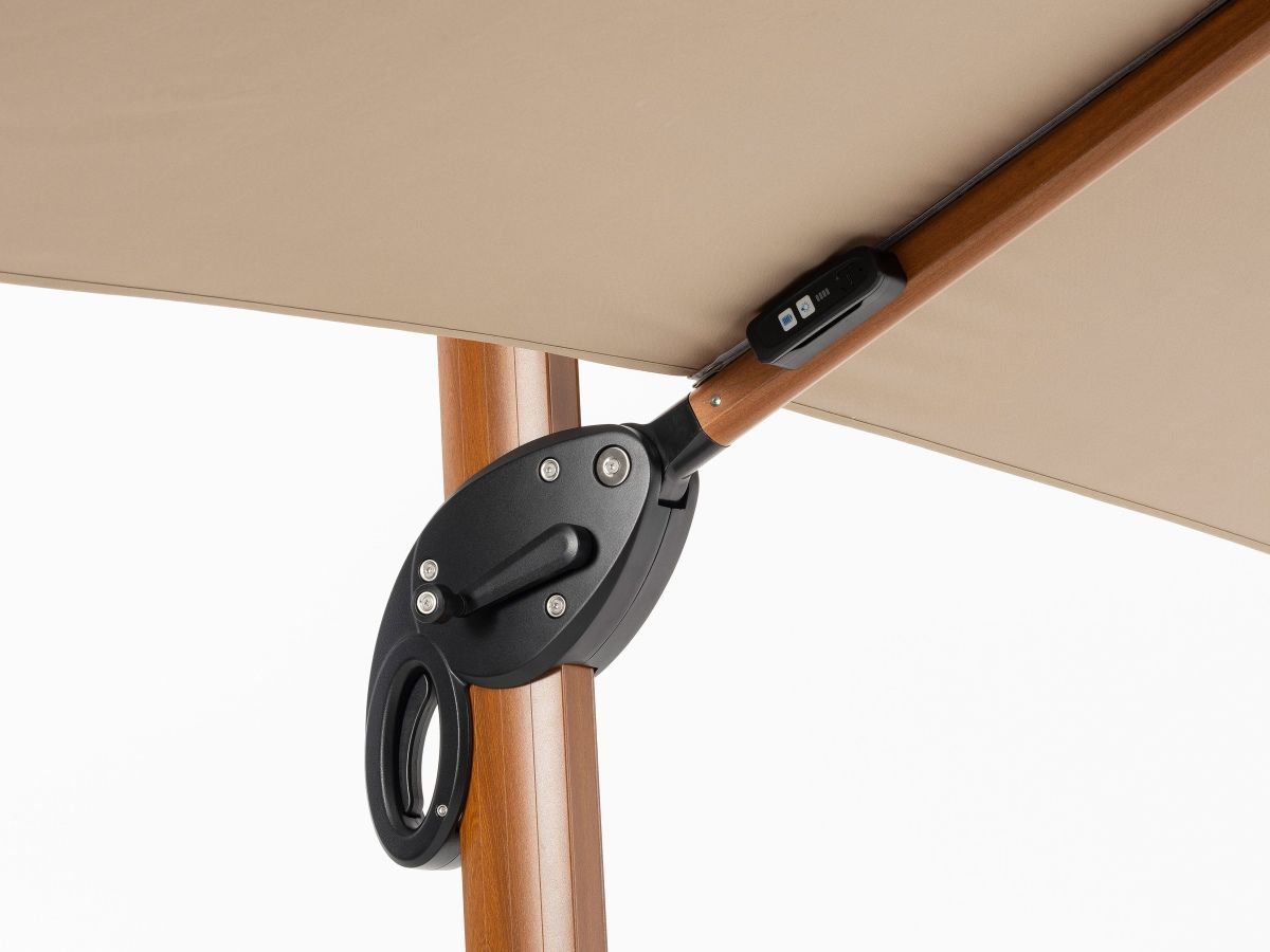 360° otočný mechanizmus: Umožňuje kompletné otáčanie slnečníka okolo svojej osi.