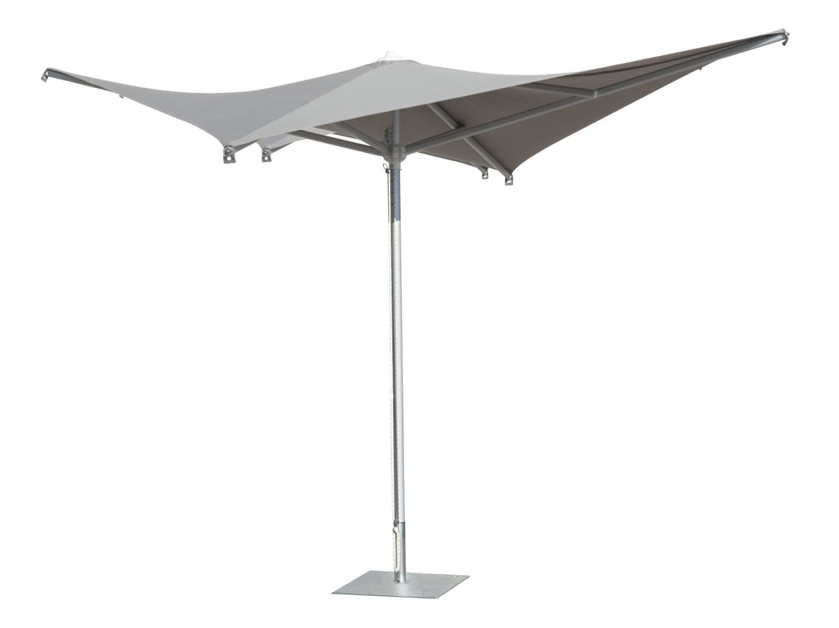 Slnečník Vela od renomovanej talianskej spoločnosti Scolaro Vás zaujme svojím atypickým dizajnom. Konštrukcia slnečníka má hliníkový rám v prevedení Inox, ktorý na prvý pohľad vyzerá ako nerez. Všetky doplňkové komponenty ako skrutky a matice sú z nerezovej ocele. Tieniaca plachta slnečníku je vyrobená z akrylu, ktorá odpudzuje vodu a nečistoty. Hustota akrylovej látky je 350gr/m². Slnečník Vela je dostupný vo veľkostiach 2 x 2 m a 3 x 3 m a tieniaca plachta je dostupná v 2 farebných kombináciách a to v bielej a sivohnedej, ktoré môžete vidieť na priloženom obrázku nižšie .