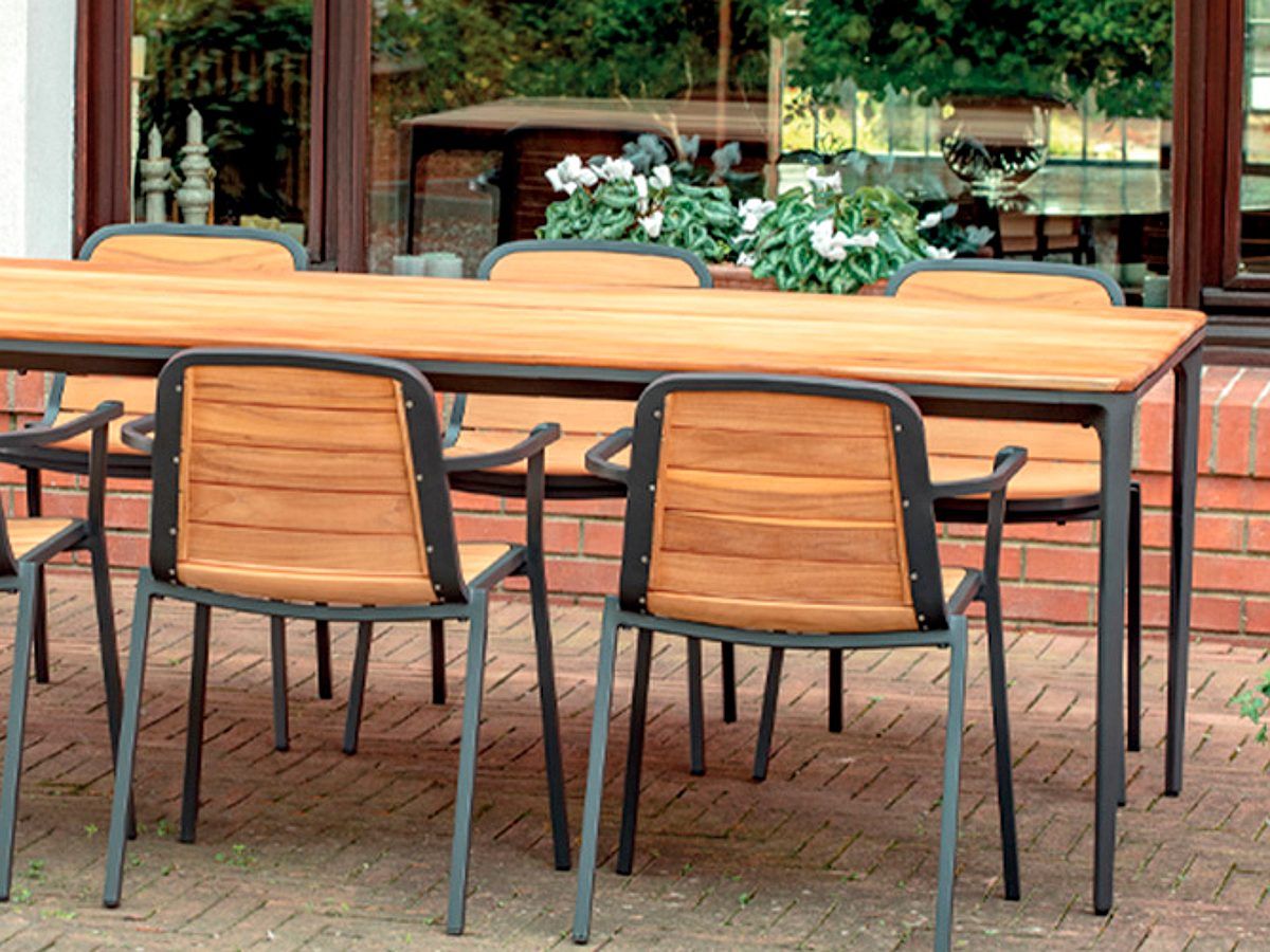 Elegantný a krásny záhradný jedálenský stôl BahamasTeak bude dominantou každej terasy či záhradnej pergoly. Konštrukcia stola je hliníková striekaná práškovou antarcitovou farbou. Stolová doska je z teaková dreva. Pri jeho veľkosti pri ňom pohodlne usadíte celú rodinu a vychutnáte si obed či večeru. Stôl Bahamas Teak je dostupný aj v bielej farbe.