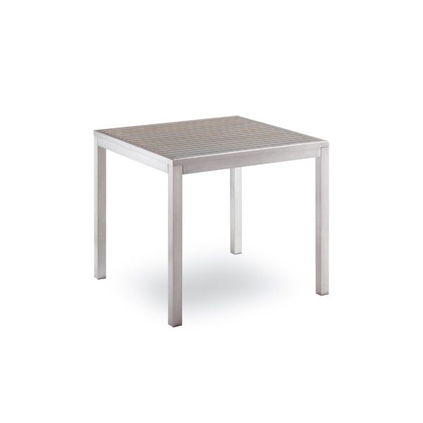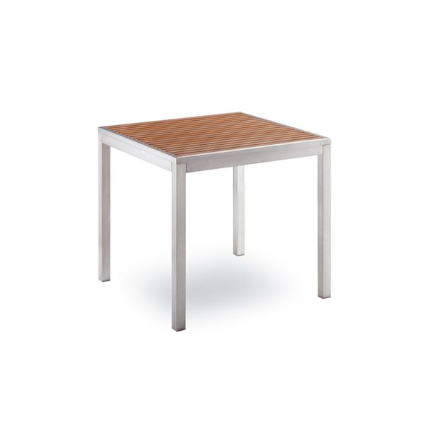 Odolný a praktický záhradný stôl Bavaria 80 je ideálnou voľbou na terasy hotelov a reštaurácií. Rám stola je z brúseného elexovaného hliníku, ktorý dodáva stolu saténový vzhľad. Vrchná stolová doska je z hliníkových lamiel pokrytá špeciálnym termoplastickým materiálom, ktorý vzhľadovo imituje drevo, je odolný voči UV a škarbancom. Tento materiál je takmer bezúdržbový, ľahko sa čistí, nestarne a má dlhú životnosť.