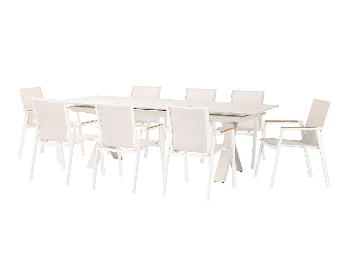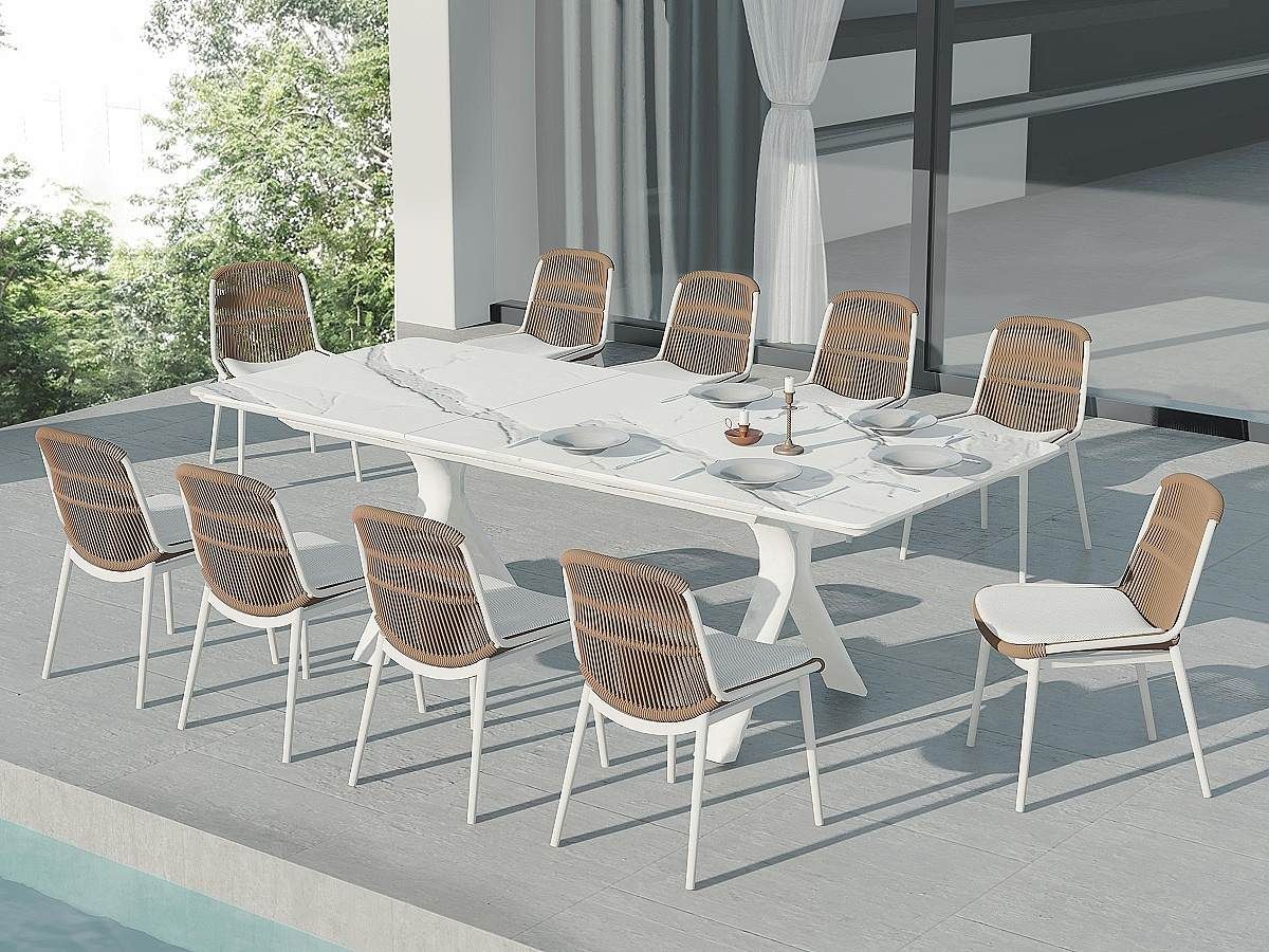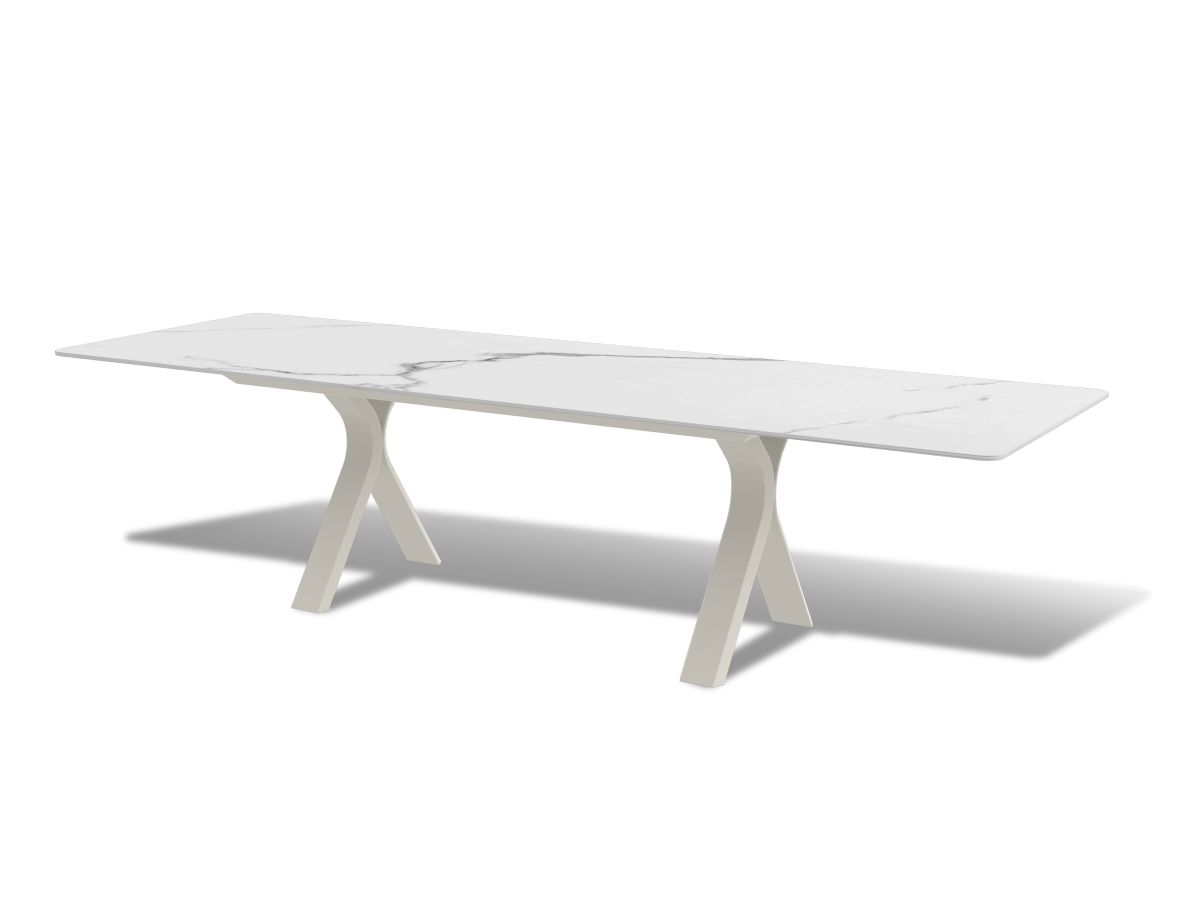 Nádherný a elegantný záhradny stôl Carson bude hviezdou každej terasy. Rám stola je hliníkový striekaný krásnou ivory farbou. Stôl má stolovú dosku z materiálu sinterstone v dekore sivobieleho mramoru. Stôl je rozťahavací z 240cm na 300cm jednoduchým pohybom.