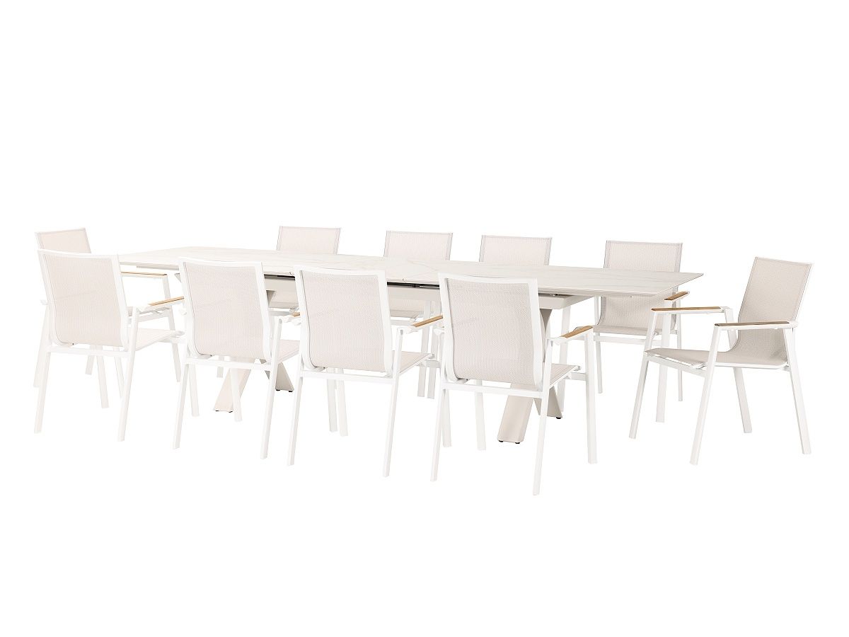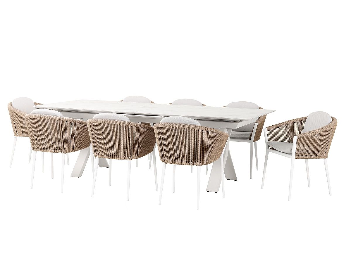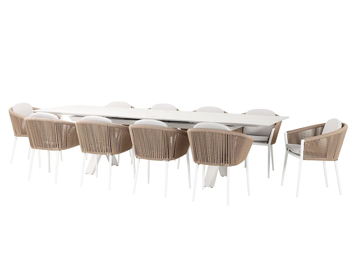 Nádherný a elegantný záhradny stôl Carson bude hviezdou každej terasy. Rám stola je hliníkový striekaný krásnou ivory farbou. Stôl má stolovú dosku z materiálu sinterstone v dekore sivobieleho mramoru. Stôl je rozťahavací z 240cm na 300cm jednoduchým pohybom.