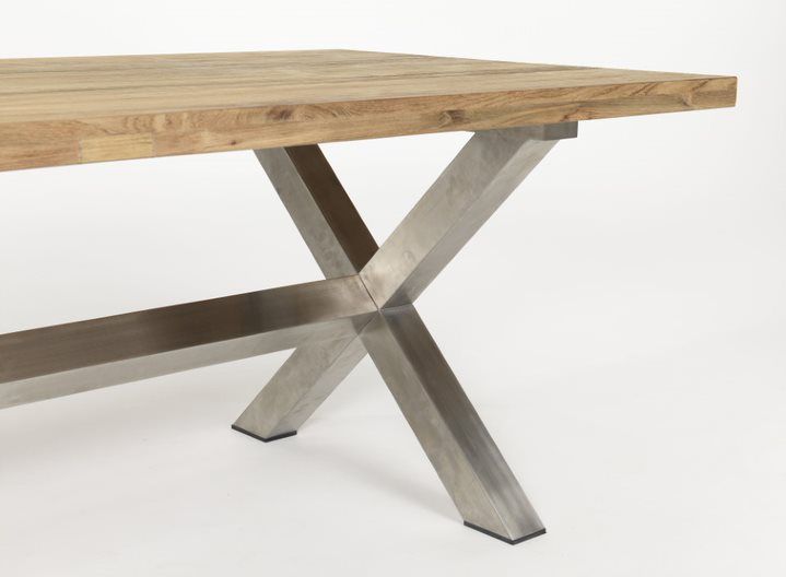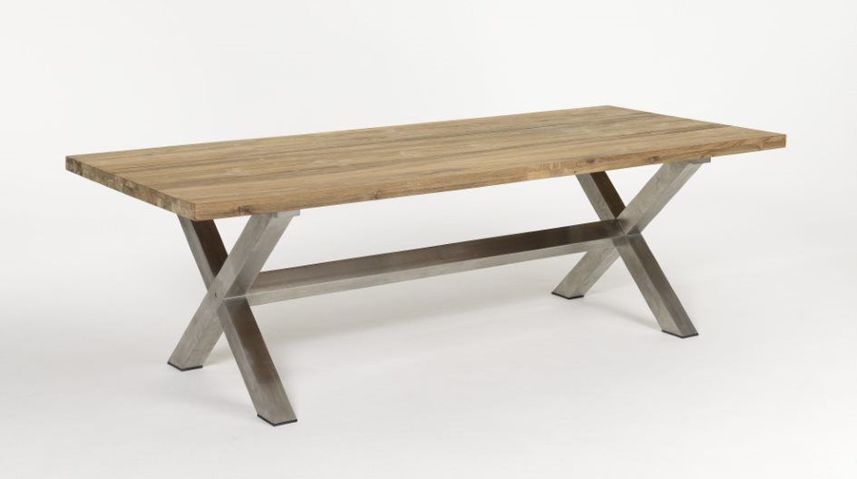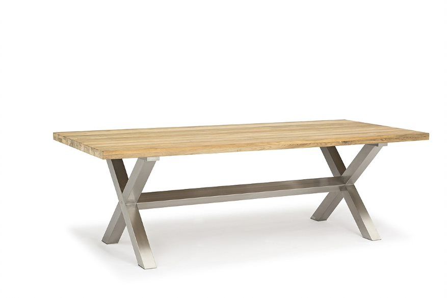Nádherný záhradný jedálenský stôl Crossleg bude dominantou každej terasy či záhradnej pergoly. Konštruckia stola je z nerezovej ocele a stolová doska má povrch z recyklovaného teakového dreva. Pri jeho veľkosti pri ňom pohodlne usadíte celú rodinu a vychutnáte si obed či večeru.