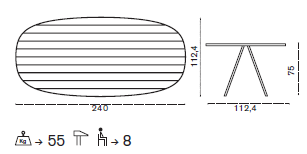 Moderný a dizajnový oválny záhradný stôl Esedra má hliníkovú konštrukciu a vrchná stolová doska je z prémiového teakového dreva z certifikovaných plantáží. K stolu sa dokonale hodia stoličky Pluvia či Kilt, ktoré nájdete v sekcii stoličky a kreslá. Vďaka svojej veľkosti k nemu pohodlne usadíte 8 ludí.