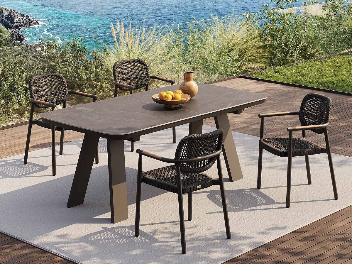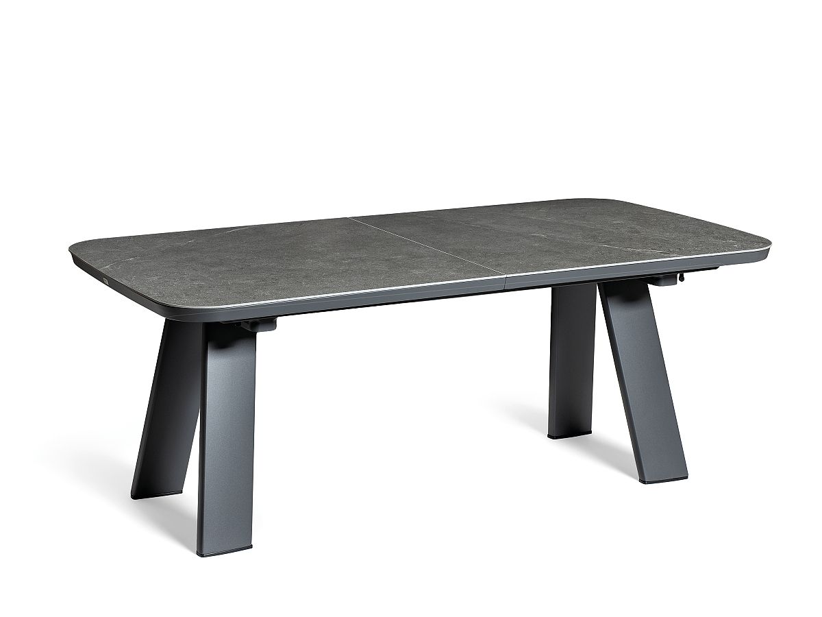 Jedálenský stôl Milos predstavuje dokonalú kombináciu technickej precíznosti a moderného dizajnu. Je vybavený integrovaným rozkladacím systémom, ktorý umožňuje jednoduché predĺženie plochy podľa potreby. Vďaka hliníkovej konštrukcii je stôl ľahký a zároveň stabilný, zatiaľ čo antracitové prevedenie s keramickou doskou mu dodáva sofistikovaný charakter vhodný do moderných exteriérov aj interiérov. Konštrukcia stola je z pevného hliníku a striekaná práškovou farbou. Stolová doska je 6mm hrubé tvrdené sklo s keramickým nástrekom. Vďaka rozkladaciemu systému stôl pohodlne a ľahko roztiahnete z pôvodných 200 cm na 260 cm.