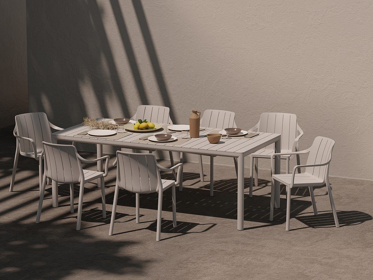 Krásny rozťahovací záhradný stôl Tevere sa pýši elegantným dizajnom s hladkými líniami, bez ostrých hrán a so zaoblenými nohami. Doska stola je vyrobená polypropylénu so skleným vláknom a s anti-UV úpravou, ktorá zabezpečuje odolnosť voči poveternostným vplyvom a slnečnému žiareniu. Na rám a nohy stola je použitý lakovaný hliník. Stôl je vybavený nastaviteľnými nohami, ktoré zabezpečujú stabilitu aj na nerovnom povrchu. Stôl má praktický rozťahovací mechanizmus. Produkty značky NARDI sú testované renomovaným talianskym laboratóriom CATAS, ktoré sa zameriava na kvalitu a použitie nábytku v gastro sektore. Použité materiály pri výrobe zaručujú vhodnosť použitia v gastronomických prevádzkach, kde sa vyžaduje dlhodobá funkčnosť a vysoká antibakteriálna odolnosť. Stôl Tevere je dostupný v 4 farebných prevedeniach - Tortora, Corda, Antracite a Terra. Vo farebnej verzii Terra je stolová doska vyrobená z REGENEROVANÝCH polypropylénových živíc zo sklenených vlákien. Regenerovaný polypropylén zo sklenených vlákien môže podliehať farebným zmenám v dôsledku použitia recyklovaného materiálu.