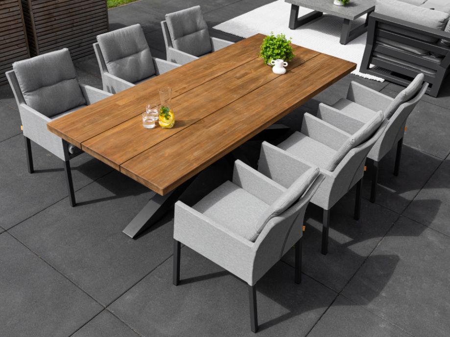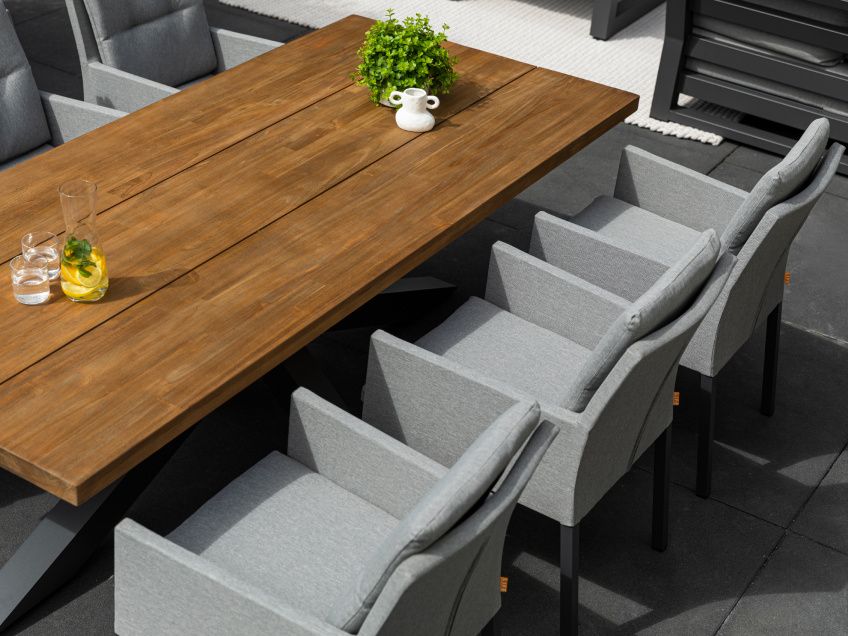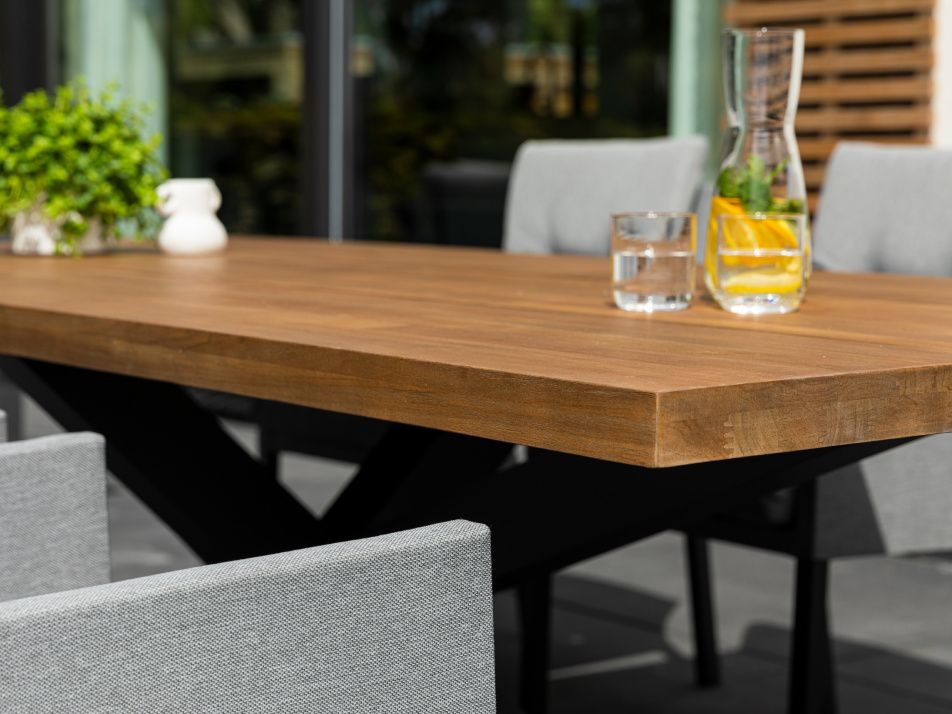 Elegantný a robustný záhradný jedálenský stôl Timor Lava Robust Teak bude dominantou každej terasy či záhradnej pergoly. Konštrukcia stola je hliníková striekaná práškovou antarcitovou farbou. Stolová doska je z robustného prémiového teaková dreva. Pri jeho veľkosti pri ňom pohodlne usadíte celú rodinu a vychutnáte si obed či večeru. Stôl je dostupný v dvoch veľkostiach 230x100 cm a vačší 280x100 cm. Stolová doska je dostupná aj v šedivej ,,starenej farbe" GREY TEAK